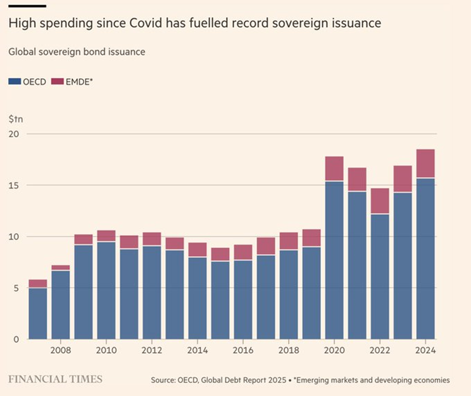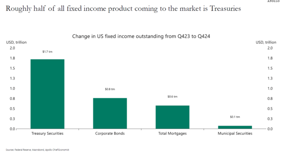 ... nicht nur für die OECD-Länder gesamthaft, sondern speziell auch für die USA wird das Anleihenangebot weiter steigen - mittlerweile etwa die Hälfte der US-Bond-Emissionen sind Staatsanleihen: |