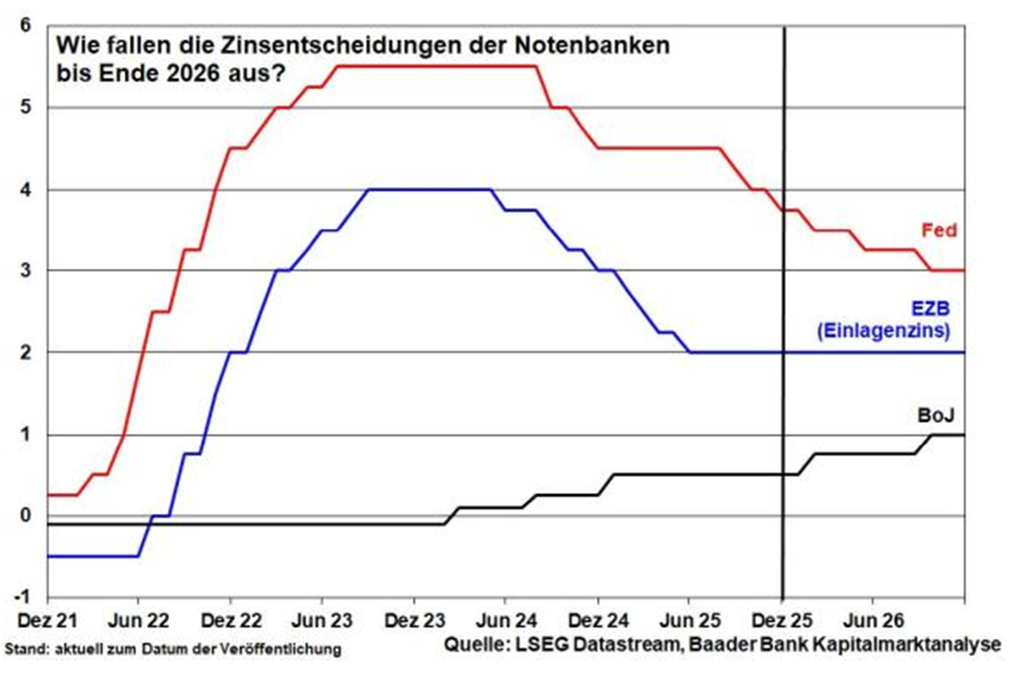 aktuelle Terminmarkteinschätzung betreffend Einlagenzins (und dadurch auch Leitzins) für den EUR-Raum, USA und Japan |