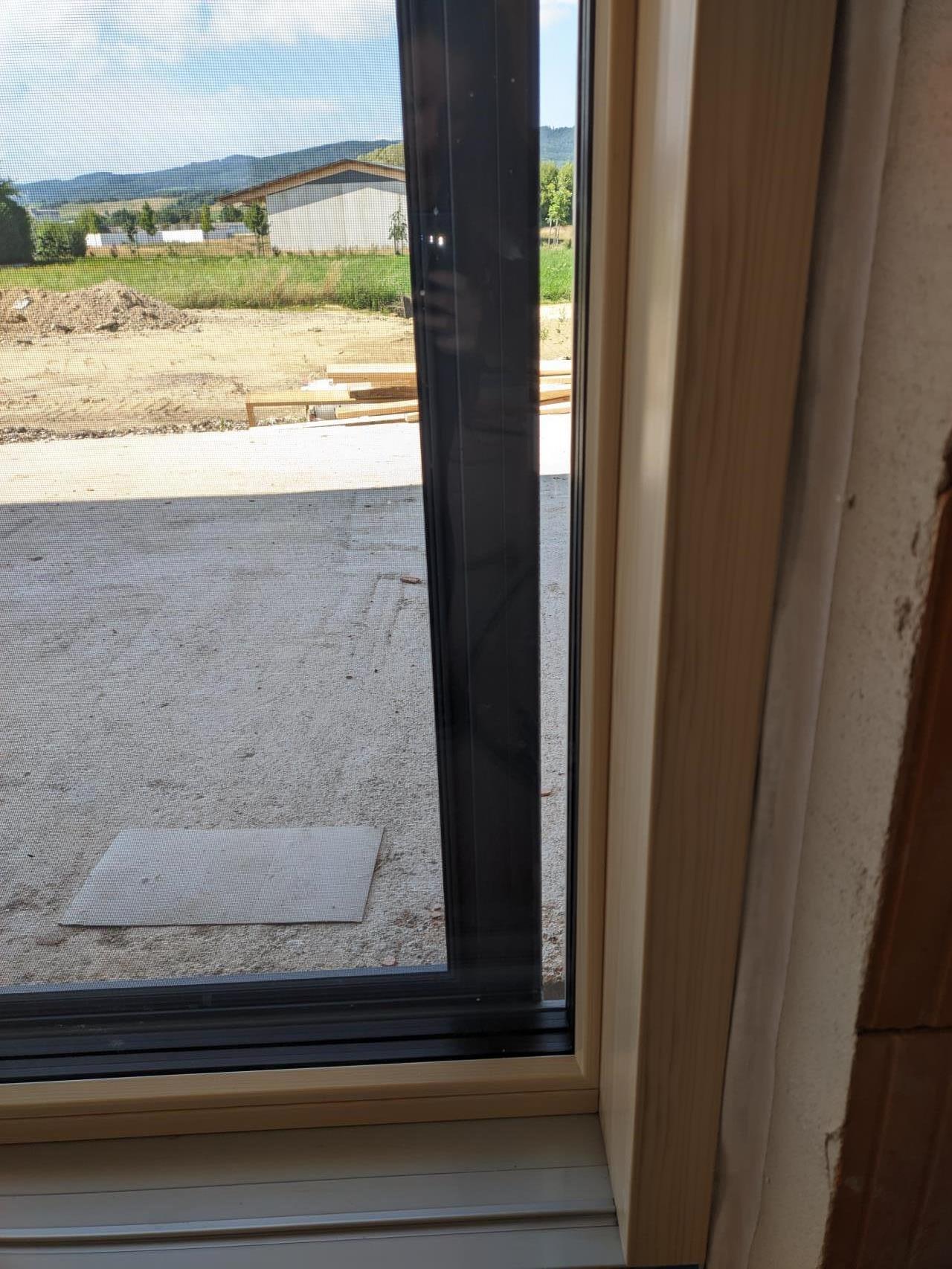 Beim Schiebeteil passt es leider auch nicht ganz: Wenn der Schieberahmen so positioniert wird, dass er auf der einen Seite bündig ist mit dem Rahmen (also nicht ins Sichtfenster springt), ist auf der anderen Seite ebenso ein großer Spalt.