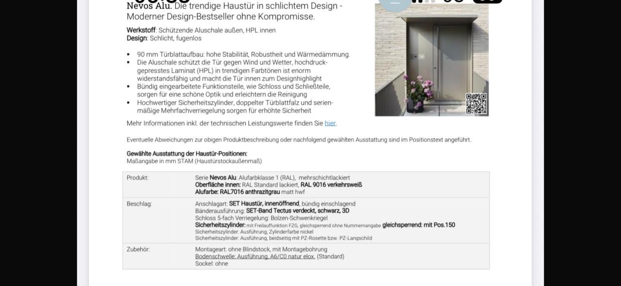 ich bräuchte mal eure Einschätzung zu einem Angebot für unsere neue Haustür. Wir sind in der Planung und haben jetzt die Zahlen für eine Josko Haustür (Modell Well.Come) vorliegen. Der Preis: Netto knapp über 10.000 €, macht brutto fast 12.000 €. Wichtig: Das ist der reine Materialpreis, ohne Montage.