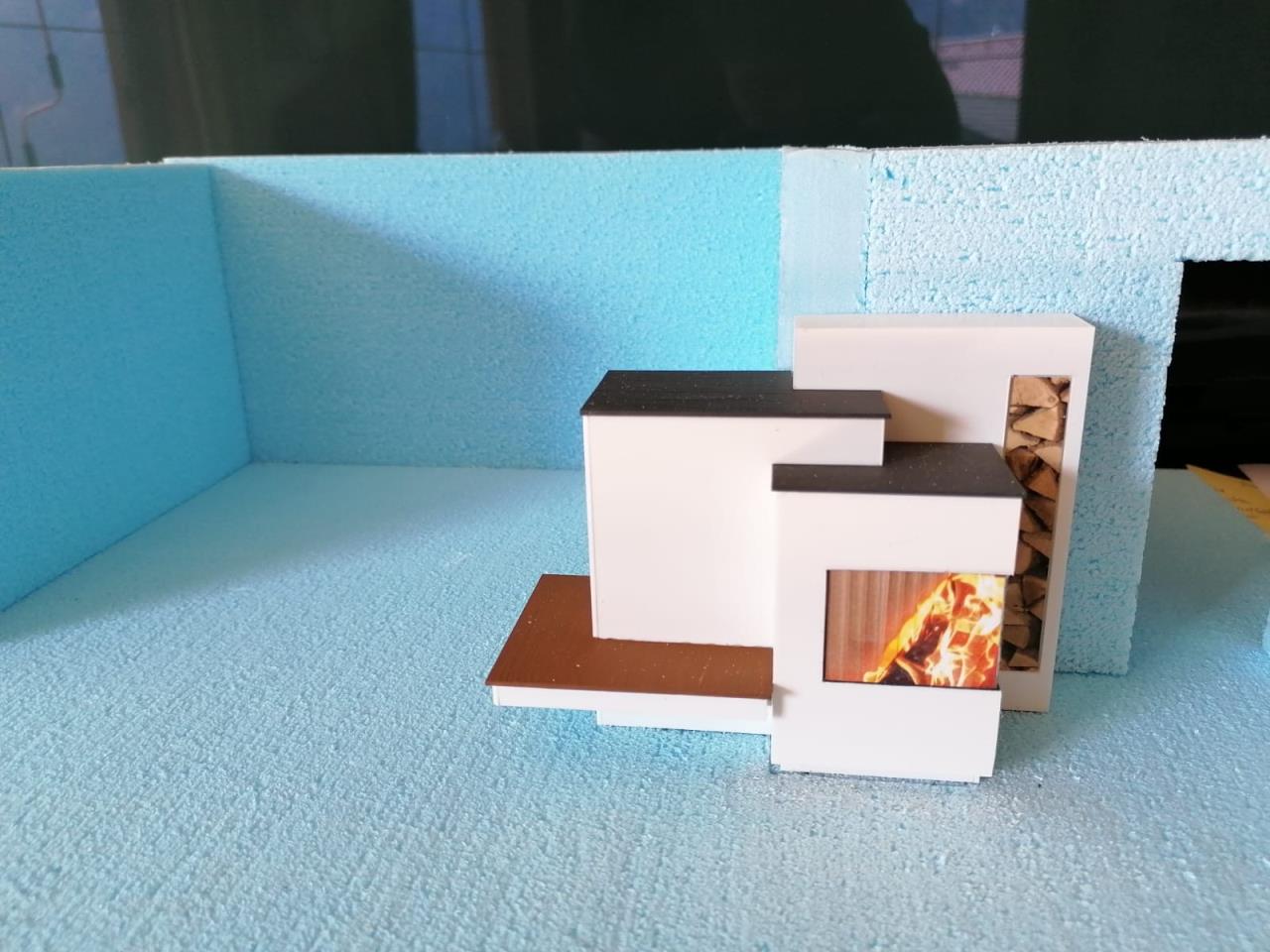 Modell unseres Ofens, ausgeführt als Raumteiler Wohnzimmer/Küche