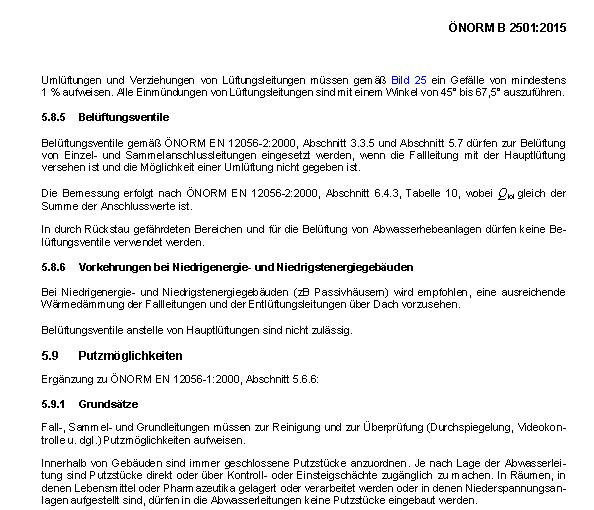 Und ein «Selbstbauer» muss sich im Klaren sein, dass er, bei unsachgemässer Installation der Anlage, nicht nur sich und seine Mitbewohner/Besucher gefährdet. Wenn kontaminiertes Wasser (etwa über Schmutzwasserverbindungen) in öffentliche Netz gelangen kann, trifft das alle Mitbenutzer. Mal googeln «Fäkalkeime im Trinkwasser» Hier noch ein Ausschnitt aus der Norm B 2501. Belüftungsventile und Passivhaus. Nochmals: Ich möchte nicht, dass die Kanalisation an einem Belüftungsventil in meiner Wohnung endet. Das Argument mit «was ist bei einem Sifon» sticht nicht. Bei normale Benutzung und «normgerechter» Installation (auch der Wasserstand im Sifon ist «normiert») kann da kein «Kanalgas» austreten. Übrigens - häufig hat bei Duschrinnen der Sifon nicht den geforderten Wasserstand. Mal darauf achten. In diesem Sinne HDE |