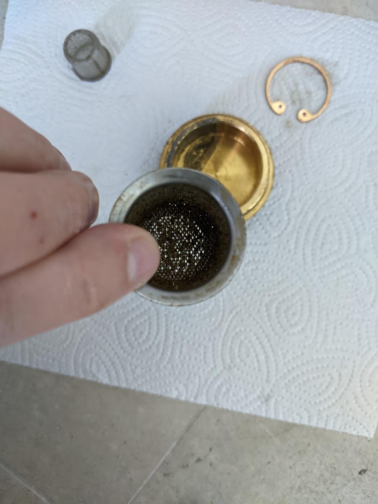 So ich habe mich jetzt mal an das reinigen der Sole Filterbälle getraut. Den einen (falschen - hatte der Installateur ja erst falsch eingebaut) nach dem Gerät und den richtigen großen vor dem Gerät. Kleiner: Großer: Es war also ziemlich Dreck in beiden Filtern. Den kleinen habe ich jetzt gleich weggelassen, da er nach dem Gerät eh keinen Sinn macht. (der ganze Kugelhahn ist an der Stelle einfach unnötig gewesen). Den großen habe ich ebenfalls gereinigt. Dabei nach cacers Hinweis auch auf den richtigen Sitz des Sprengrings geachtet. 😁 Nun bin ich mal gespannt wie die Sole Umwälzpumpe jetzt tut. Mal sehen ob die Auto Drehzahl nun nach unten geht. Dabei habe ich auch gleich die Hähne der Filterbälle abgemacht um sie sauber überdämmen zu können. (möglichst so dass man sie später leicht montieren kann) Wie man sieht hatte sich schon leicht Rost abgesetzt. Ist auch klar, da sich hier immer Kondensat gebildet hatte. |