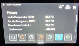 Hallo allerseits, Ich habe zwsichendurch einiges nachgelesen. Ja, das dürfte mit den Einstellungen zu tun haben, aber ich hab keinen Plan wie. Also vielen Dank schon mal für eure Unterstützung, die Inbetriebnahme und die Wartung (#ärger, dass ich mir das qualifizierte Ablesen von Werten einreden hab lassen) haben das leider nicht geschafft. Art des Hauses: Massivholzhaus (Außenwände sind 15,5 cm Massivholz + 16 cm Holzweichfaser) Lt Simulation beträgt der maximale Wärmebedarf 6 kw. Die Heizung wurde auch entpsrechend knapp darauf ausgelegt (Tiefenbohrung 110m). Folgende Einstellungen sind derzeit hinterlegt: Mir ist natürlich klar, dass der Holzofen mehr Leistung bringt als für das Haus benötigt wird und somit die Heizung sich ausschaltet. Was mich an der derzeitigen Konfiguration ärgert ist, dass die Innentemperatur danach absinkt, bis die Heizung erst Stunden nach der unterschrittenen IT langsam startet und dann noch dazu die berechnete Temperatur nicht erreicht (bei 35 hz): oder noch krasser: Pro Minute -1,8 Gradminunten! Auf welches Ereignis wartet die Heizung hier bis die Vorlauftemperatur über den berechneten Vorlauf geht? Bzw wo wird das gesteuert? Von einer "intelligenten Heizung" hätte ich erwartet, dass beispielsweise erkannt wird, dass die Temperatur in den letzten zB 3 Stunden gefallen ist, bei einer Außentemperatur von 3 Grad von weiter sinkenden Temperaturen auszugehen ist. Die Heizung könnte dann zB bereits bei gewünschter IT +0,5 mit zB 20hz starten um langsam dem sinkenden Trend entegegen zu arbeiten... etc. Diese Funktionen dürften allerdings nicht vorhanden sein. (Sorry für meine vielleicht etwas hohe Erwartungshaltung. Ich hatte in einer Wohnung mal das smarte Thermostat "Tado" kennengelernt. Das Thermostat braucht am Anfang einen Test und ermittelt den Energiebedarf der Wohnung (wie lang braucht es bis die Wohnung um 3 Grad erwärmt werden kann). Mit Heizkörpern, wo man die Temperatur kurzfistig steuern kann ist das natürlich viel einfacher, aber die Sache ist auch schon ein paar Jährchen her.) Die Werbung für den Smarten Raumthermostat RMU s40, welcher mir verkauft wurde, hat bei mir jedenfalls den Eindruck hinterlassen so ähnlich zu funktionieren und das tut es gar nicht. Vielen Dank für die Unterstützung. Liebe Grüße clebaer |