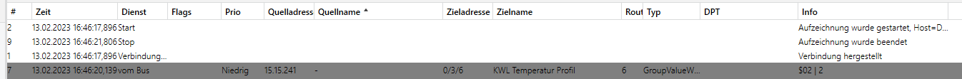 Danke. Das hilft mir weiter! Wie es aussieht, kommen die Telegramme doch nicht von HA richtig auf den Bus: So sieht es aus, wenn ich vom Busmonitor umschate: Was verwendest du? Das ist nicht zufällig? Home Assistant? Edit: Habs in HA gefunden.... |