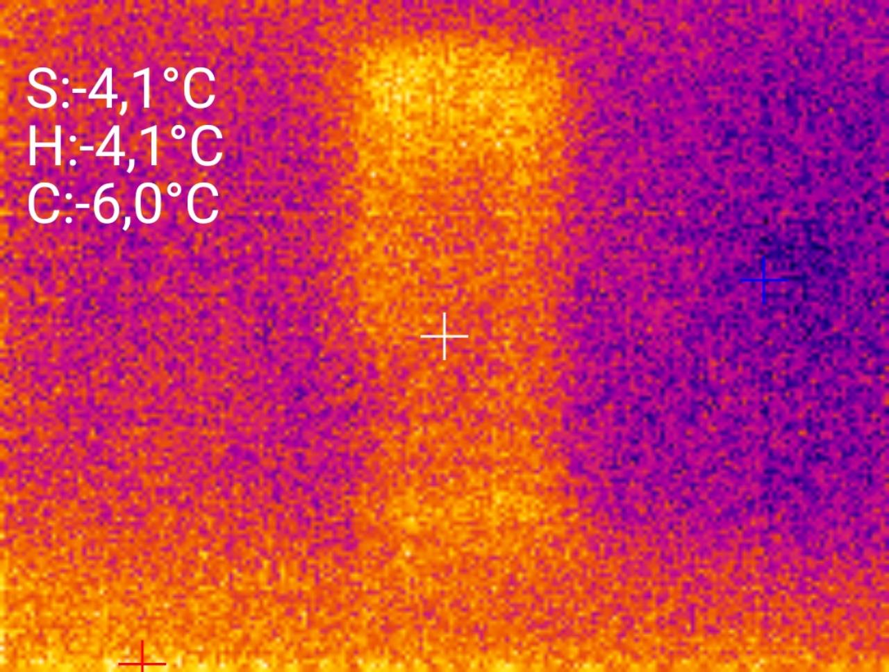 Mich hätte interessiert wie ihr mit der Stellungsnahme des Herstellers umgehen würdet und ob es nun ein Mangel ist oder nicht. Er spricht ja von einer "Wärmebrücke die keinen Reklamationsgrund darstellt." Hier ein älteres Foto von der Innenansicht, damit man die Türe von Innen sieht (das Haus ist jetzt Innen bereits fertiggestellt) Habe jetzt ein Foto mit der IR Kamera gemacht. Aussentemperatur derzeit: -4°C |