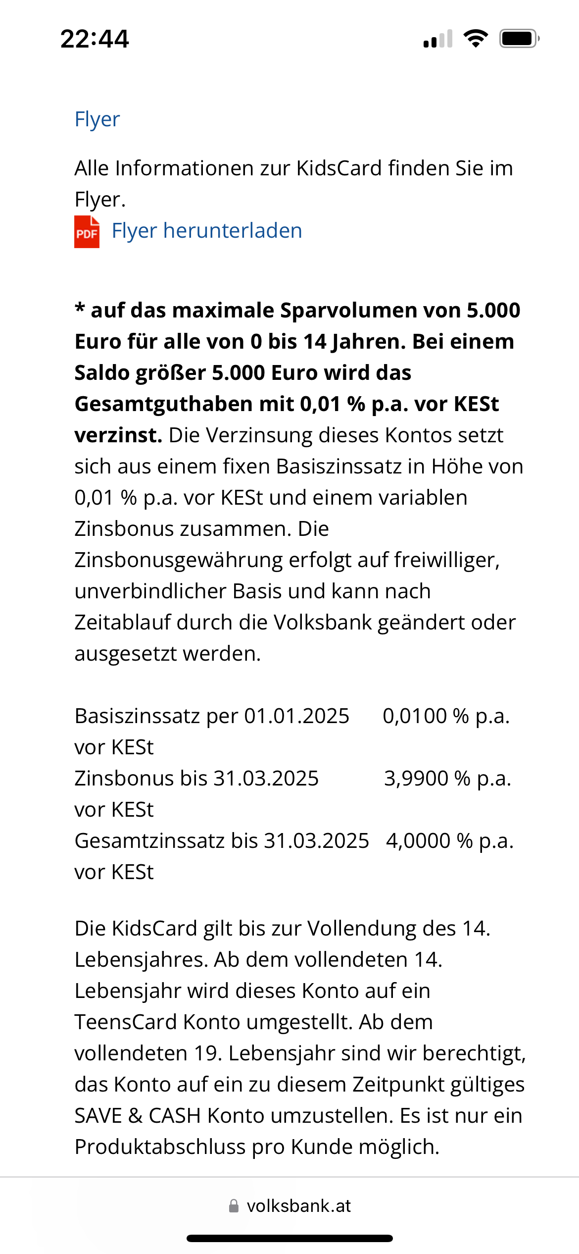 Thx für die Info. Was ich aber gesehen habe... Die 4% sind nicht fix bei der Volksbank. |