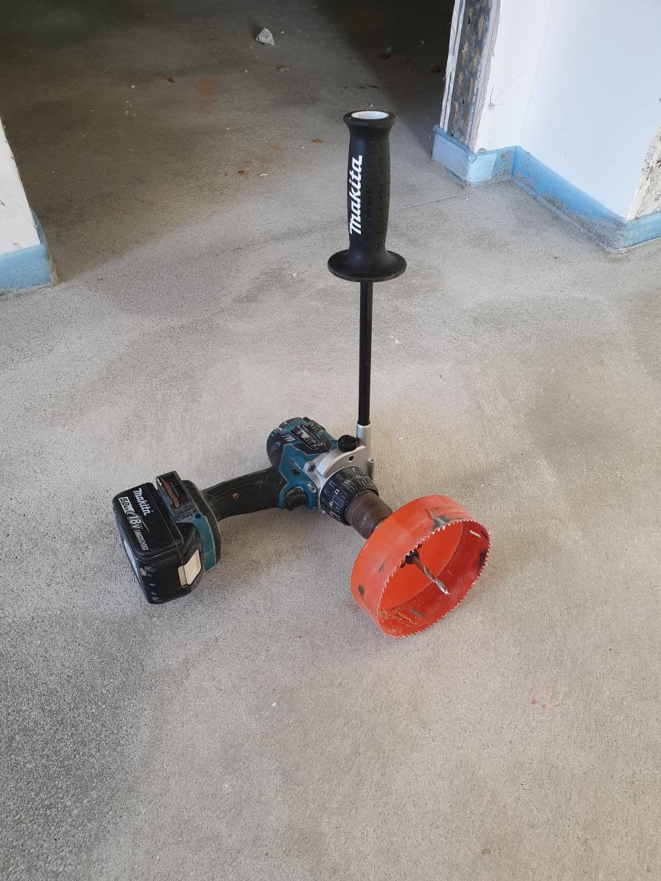 Bei uns wars bei den 125er Rohren dann doch nicht notwendig. Da hat die Hausfirma kleine Teile der Beplankung abnehmbar gemacht, die ich dann mit der Stichsäge ausgeschnitten hab. Nachdem ich die Balken dahinter mit der Kettensäge entfernt hab... Wieso ist bei dir so knapp unter der Decke eigentlich kein Balken @Pedaaa ? Für die Dachdurchführung in der Garage hab ich eine 168er Lochsäge aus dem großen Fluss geangelt. Geht durch OSB auch ohne seitlichen Griff. Meinem Akkuschrauber hab ich das aber nicht angetan, sondern die richtige Bohrmaschine rausgeholt 😅 |