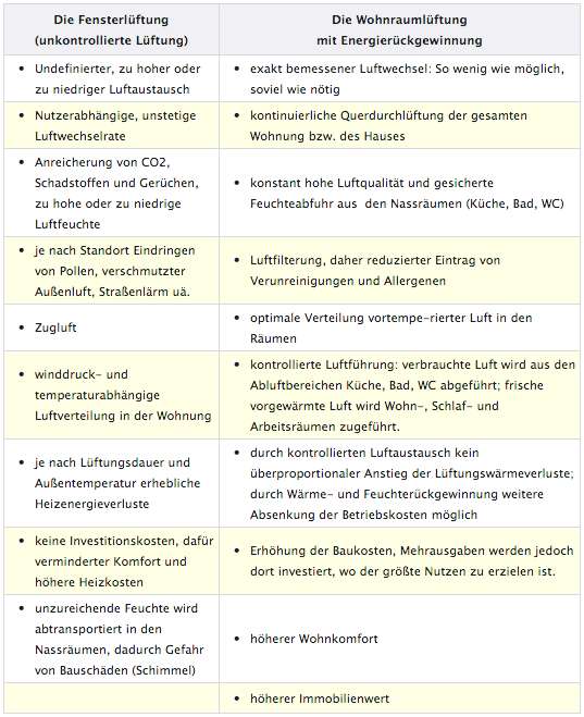 Wir sprechen, wenn wir uns über Schadstoffe unterhalten, eigentlich ausschließlich über VOCs. Es wurde ja schon mehrfach erläutert, dass das CO2 nur ein Indikator für eine Vielzahl von VOCs ist. VOCs wirken unterschiedlich, von krebserregend bis allergieauslösend. Wenn man auf seine Gesundheit keinen Wert legt, kann man auch all dies ignorieren, oder seine Zeit bei offenen Fenstern bzw. mit dem Öffnen dieser verbringen. http://de.wikipedia.org/wiki/Fl%C3%BCchtige_organische_Verbindungen Es ist immer wieder erstaunlich, wie manche Eltern ihre Kinder vor allem Schädlichen schützen wollen, wenn es aber um ein wichtiges Grundbedürfnis geht, nämlich um gute Luft im Haus und während des Schlafes, wird derart nachlässig und teilweise fahrlässig gehandelt. Nur um die Absurdität der Argumentation zu verdeutlichen: Uns wurde auch schon von Leuten mit vollkommen verschimmelten Wohnungen erklärt, dass sie gut leben. Und das mit einer Überzeugung, dass einem die Worte fehlen. Bitte nehmen Sie das nicht persönlich, Sie sind nur ein Beispiel von vielen Bauherren. Die Argumentation und das Herunterspielen von Problemen ist immer das Gleiche. Ich führe eine derartige Diskussion nicht zum ersten mal. Wenn die unkontrollierte Durchlüftung von Häusern mit dichten Gebäudehüllen verhindert wird, muss eine kontrollierte Belüftung die logische Konsequenz sein. Ob dies nun durch die Bewohner energieverschwendend über Fenster passiert (man hätte sich den Aufwand der dichten Hülle sparen können), oder über eine kontrollierte Lüftung mit Rückgewinnung der Wärme ist einerlei. Wenn man die Fensterlüftung wählt, müssen einem die Nachteile bewusst sein: hoher Lüftungsaufwand, Behaglichkeitsprobleme im Winter, Lufthygieneprobleme bei unzureichender Konsequenz, Schlafzimmerproblem. Eine KWL KWL [Kontrollierte Wohnraumlüftung] kostet Geld, löst jedoch all diese Probleme und darüber hinaus. Warme gefilterte Zuluft hat in Gegenden mit steigender Feinstaubbelastung große gesundheitliche Vorteile. |
