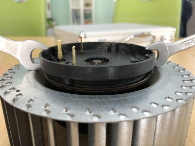 Cool vielen Dank. Ich habe gestern auch mit dem letzten Schlag die gedruckte Hülse zerbrochen. Jetzt muss ich meinen Nachbarn noch mal fragen, ob er mir einen kleinen Vorrat anlegen kann^^ Nur zur Sicherheit … Zuluft ist der Ventilator unten und Abluft der Ventilator oben richtig? So habe ich das Handbuch verstanden. Bei mir war der untere Ventilator deutlich mehr von Rost betroffen. Mir hat beim zweiten Ventilator geholfen, zunächst auf das Plastik Gehäuse zu drücken. Das schafft man gut mit den Händen. Die Lager haben ja dank der Tellerfedern axiales Spiel. Beim Drücken nutzt man das aus und löst hoffentlich den Rost. Danach ging es bei mir ganz leicht mit zwei Ringschlüsseln das Gehäuse raus zu ziehen. |