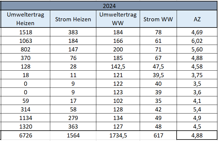 @Silbersurfer : Sorry, hatte deinen Post vollkommen übersehen, was ist es bei dir geworden? 2024 ist Geschichte und damit dokumentieren ich für mich mal wieder kurz: Grundsätzlich alles beim Alten, ich befasse mich das ganze Jahr über eigentlich nicht mehr wirklich mit der WP WP [Wärmepumpe] außer zum Start der Heizsaison und dann nochmal eine Anpassung der Zeitfenster wenn die Kernheizsaison beginnt. WP Starts 05. Jänner 2024: 2.161 WP Starts 14. Jänner 2025: 3840 -> Macht 1680 Takte im letzten Jahr. Auch die Verbräuche entnommen aus der Vaillant App sehen wieder sehr zufriedenstellend aus, gesamt knapp 2.200kWh Stromverbrauch passen sehr gut für mich |