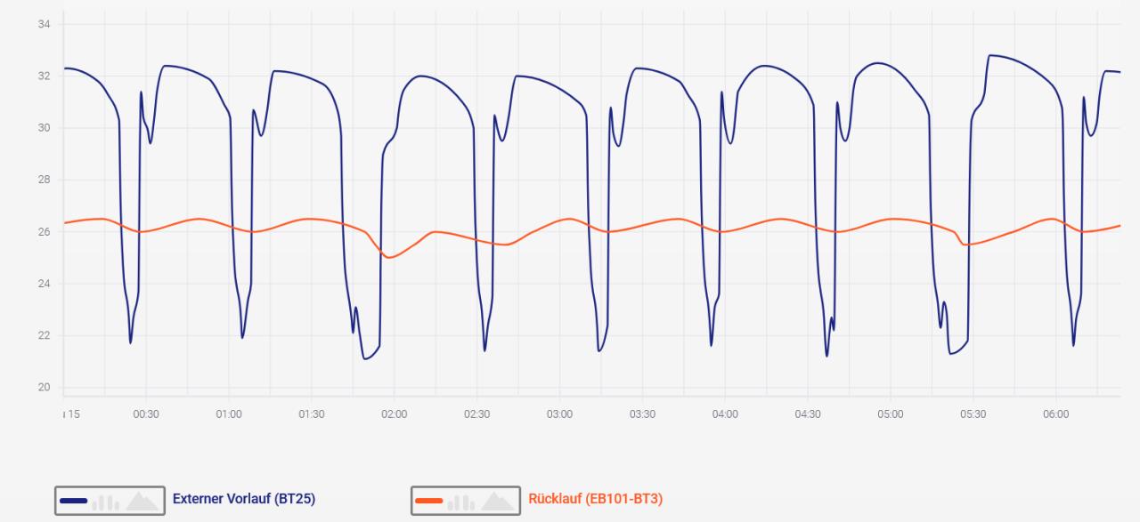 Das kommt mir alles iwie nicht richtig vor - ich hab aktuell ca alle 4-5 Stunden einen Abtauvorgang. Der Abtauvorgang selbst geht relativ schnell (ca 15min), allerdings braucht die WP WP [Wärmepumpe] dann rund eine Stunde um wieder die VL VL [Vorlauf] Solltemp zu erreichen.. Ist aber gerade wirklich eine schlechte Wetterlage für LWWP LWWP [Luft-Wasser-Würmepumpe] mit der hohen Luftfeuchtigkeit bei uns.. Wie genau schaut Deine Installation aus? Welche WP WP [Wärmepumpe], welches Kühlmittel und welcher Puffer? Bzw. auch welche VL VL [Vorlauf] Temp? Weisst Du zufällig auch bei welcher Verdampfungstemperatur Dein Gerät mit dem Abtauvorgang beginnt? |