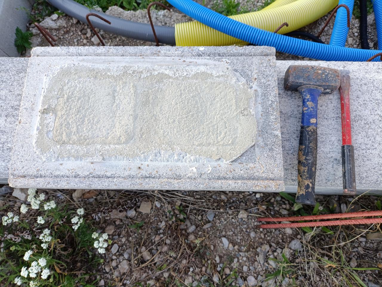 ·gelöst· Mauerabdeckplatte von Zaun entfernen