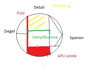 danke für die Tips. Das Dach ist mittels Holzfaser gedämmt. So wie ich das verstanden haben ist das eher "gutmütig" was Feuchtigkeit betrifft?! Kannst Du mir konkret ein eine Dampfbreme und einen Kleber empfehlen welchen ich verwenden kann/soll Wäre dass dann sowas zb. https://de.proclima.com/produkte/verbindungsmittel/anschlussklebebaender/contega-pv soll dann aber trozdem eine APU Leiste unten an den Balken ran?! so ca? |
