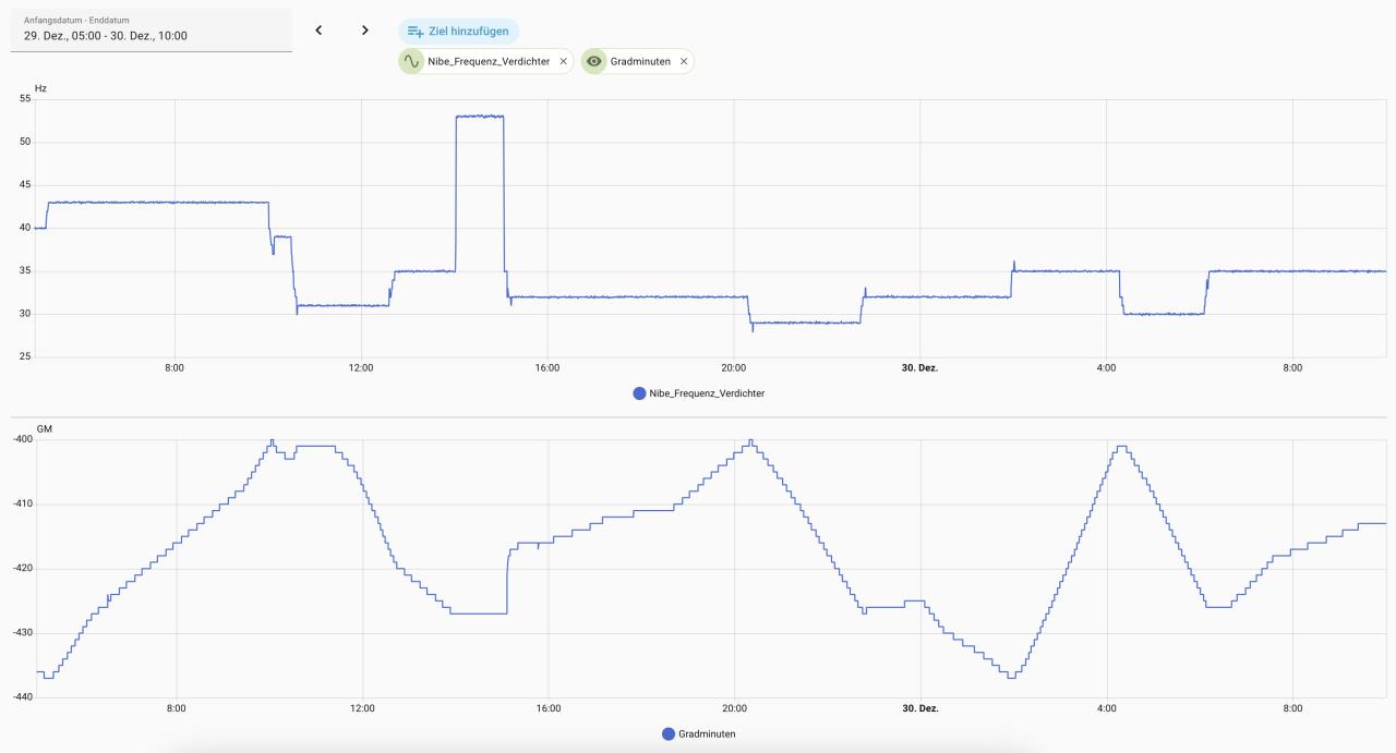 Über das Monitoring fiel mir ein merkwürdiges Verhalten der Nibe auf: