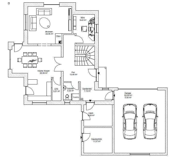 Das Büro evtl mit einer Türe unter der Stiege begehbar machen, dann kannst Ecke im Wohnzimmer auch begradigen und der Flur schrumpft nochmal... Ist der HWR-Raum gleichzeitig Lagerraum? Dann sollte an eine Türe zur Verbindung Garage - HWR-Raum gedacht werden Im OG würd ich den Abstellraum cancelen, dafür die Zwischenwand gerade durchlaufen lassen. Stellfläche ist dann halt im Bad... Und die Ankleide sollte imho eine Verbindung zum Gang oder (idealerweise) ins Bad haben. ng bautech |