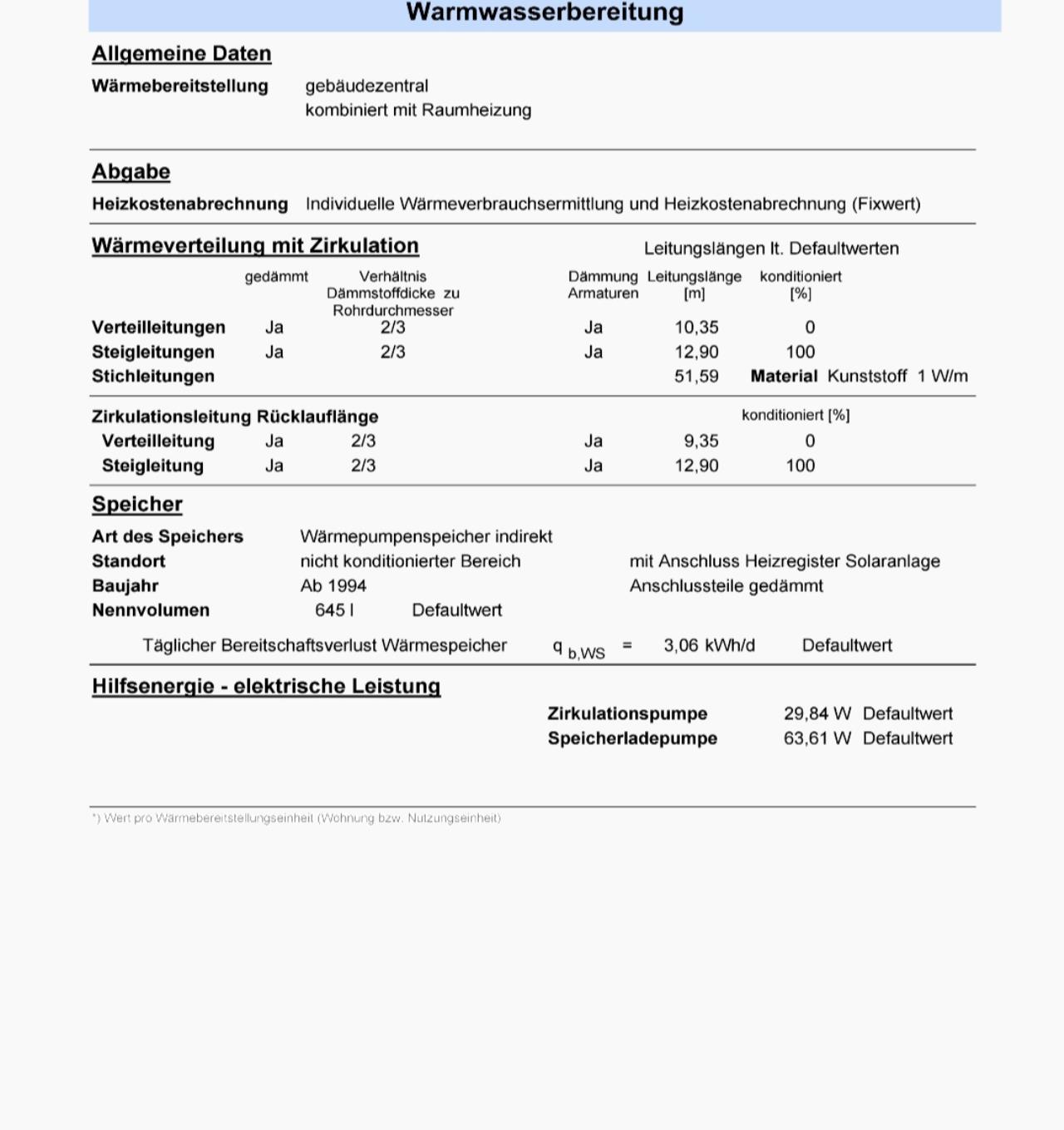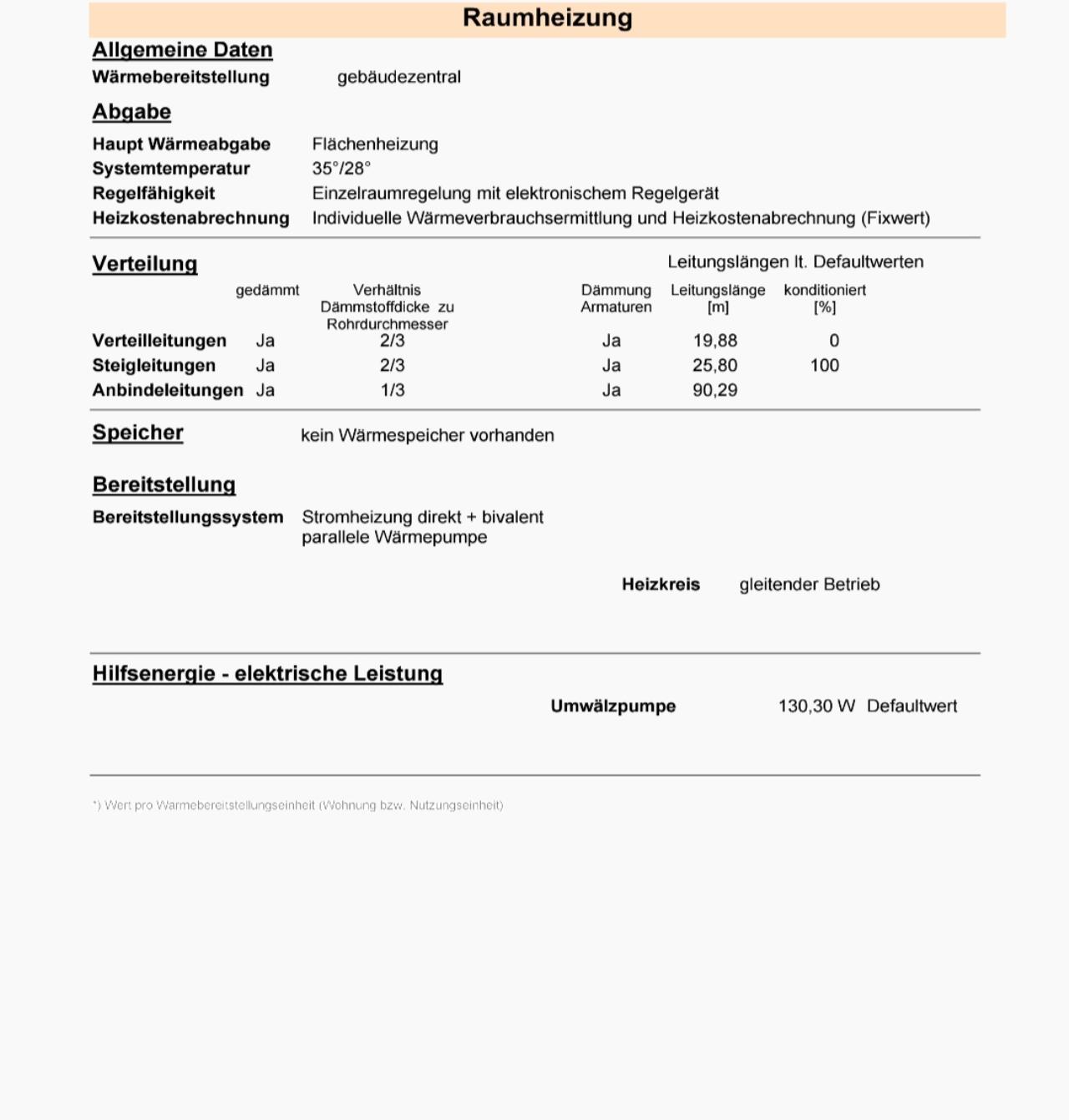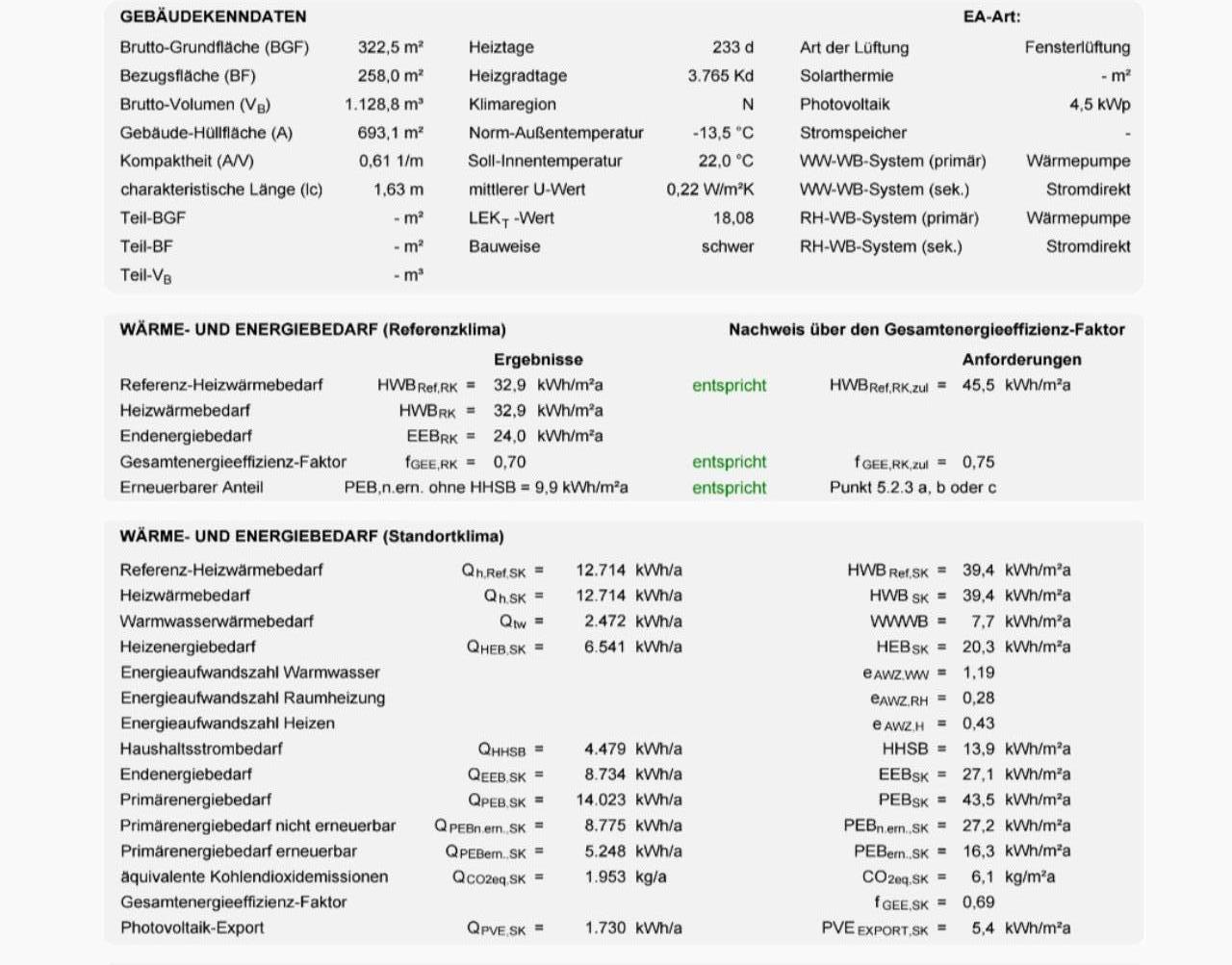 Auf die Default-Werte im EA EA [Energieausweis] würde ich nicht viel geben. Der Berechner wird da einiges mal auf default, nachdem er vom AG noch nicht überall konkrete Angaben bekommen hat (geht in der Planungsphase auch schwer), gestellt haben. Gerade die kW-Zahl bei der Haustechnikseite kannst schmeißen. Die ist fast immer deutlich höher als die Heizlastabschätzung. Der fgee wird ohne PV sicherlich schlechter, mal sehen ob du dann noch die Anforderung schaffst. Ist leider von kleineren Bauträgern/-herren immer wieder ein Thema, dass mit besserer/zusätzlicher Haustechnik, um alle Anforderungen zu erfüllen, gerechnet wird. Ausgeführt wird es dann nicht und einen richtigen Fertigstellungs-Energieausweis bekommt auch keiner mehr... |
