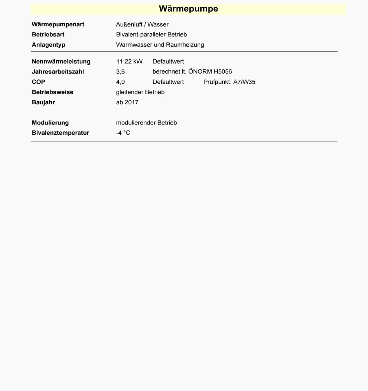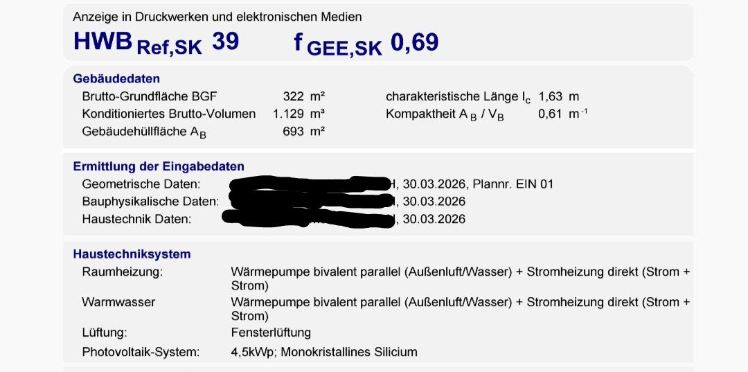 Schon der HWB ist nicht gerade ernüchternd. Wenn ich mir dann noch die WP WP [Wärmepumpe] Auslegung anschaue mit 11,2 kw würde ich auch hinterfragen. Luft im Neubau sowieso. Was sollten der ganze Spaß kosten auf wieviel qm und Grundstück. Die qm Gebäudefläche sind dann für beide Häuser? Heizung getrennt oder zusammen ein System? Zudem welche Förderungen sollst du da bekommen im Neubau? |