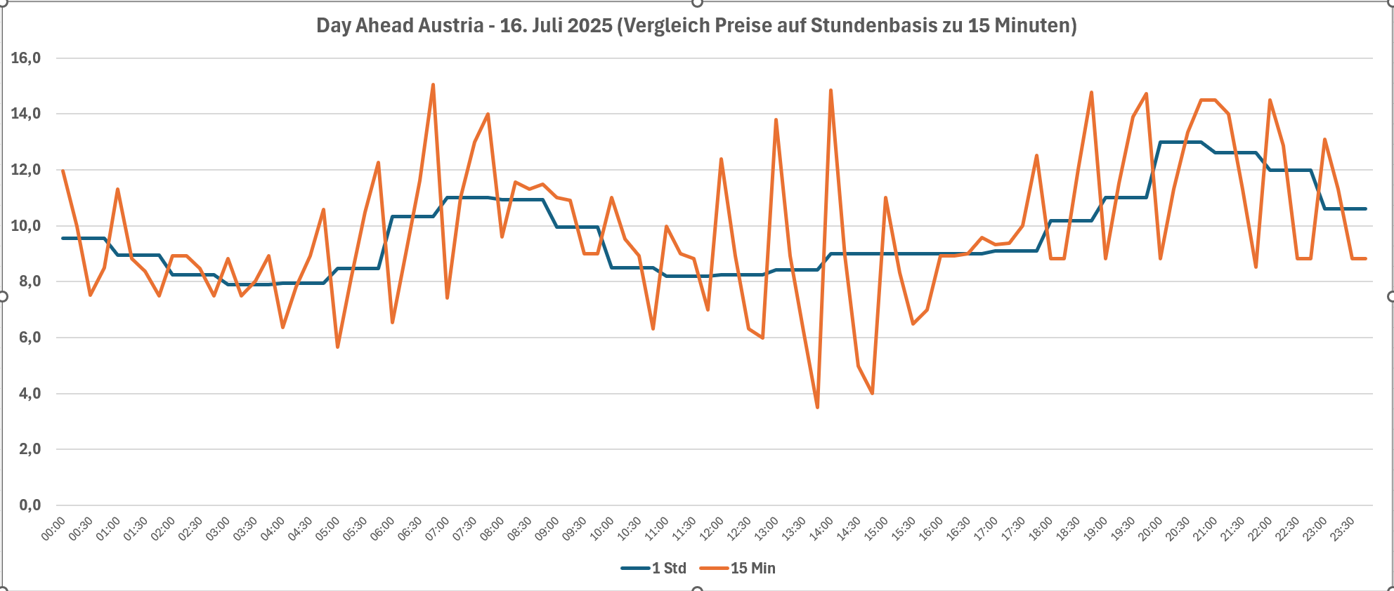 Später im Jahr wird die österreichische Preisgebotszone des Day Ahead Marktes vom 1 Stunden Raster auf 15min Werte umgestellt.