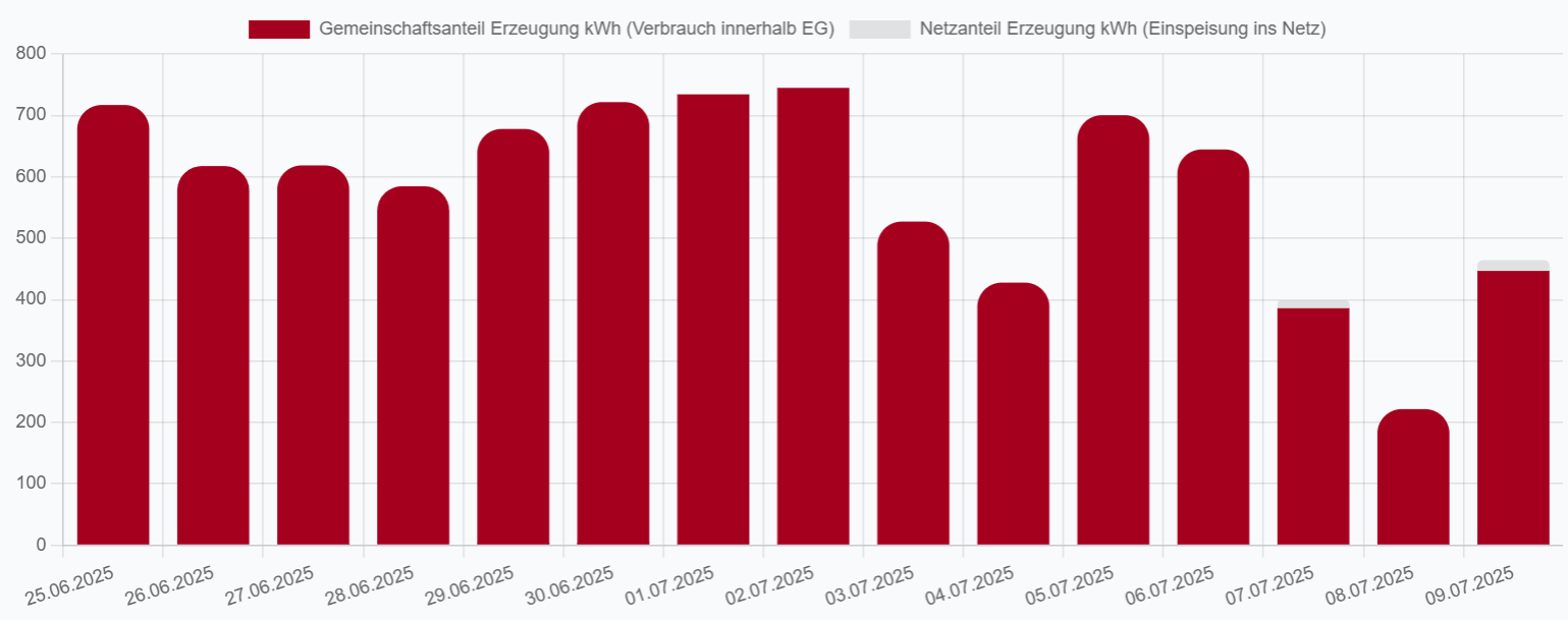 Beispiel: In den letzten 14 Tagen wurden nur 30 kWh an EVU's "geliefert" (von 8.800 eingespeisten kWh).