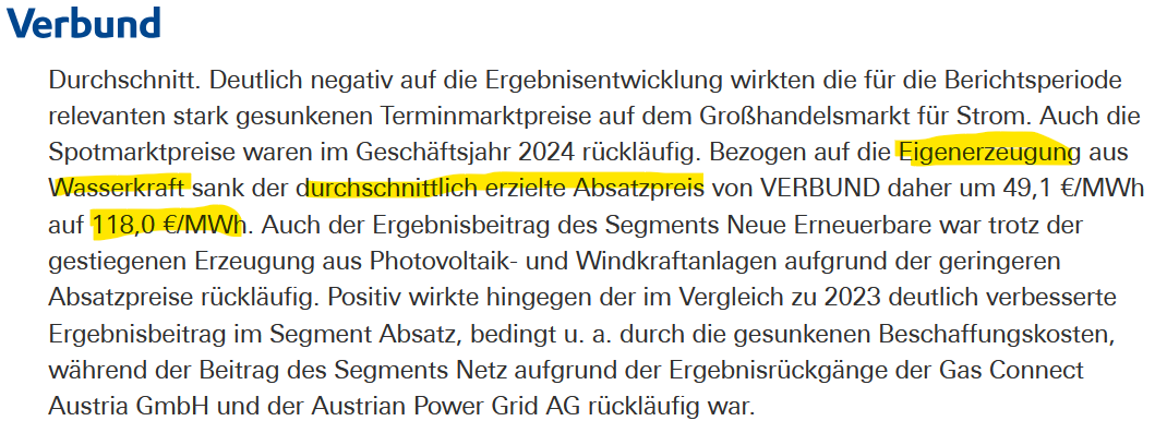 Verbund schreibt auf der eigenen Website von durchschnittlich 11.8ct/kWh aus Wasserkraft oder interpretiere ich das falsch? Quelle: https://www.verbund.com/de/konzern/news-presse/presseaussendungen/2025/3/20/corporate-news-verbund-jahresergebnis-2024 |