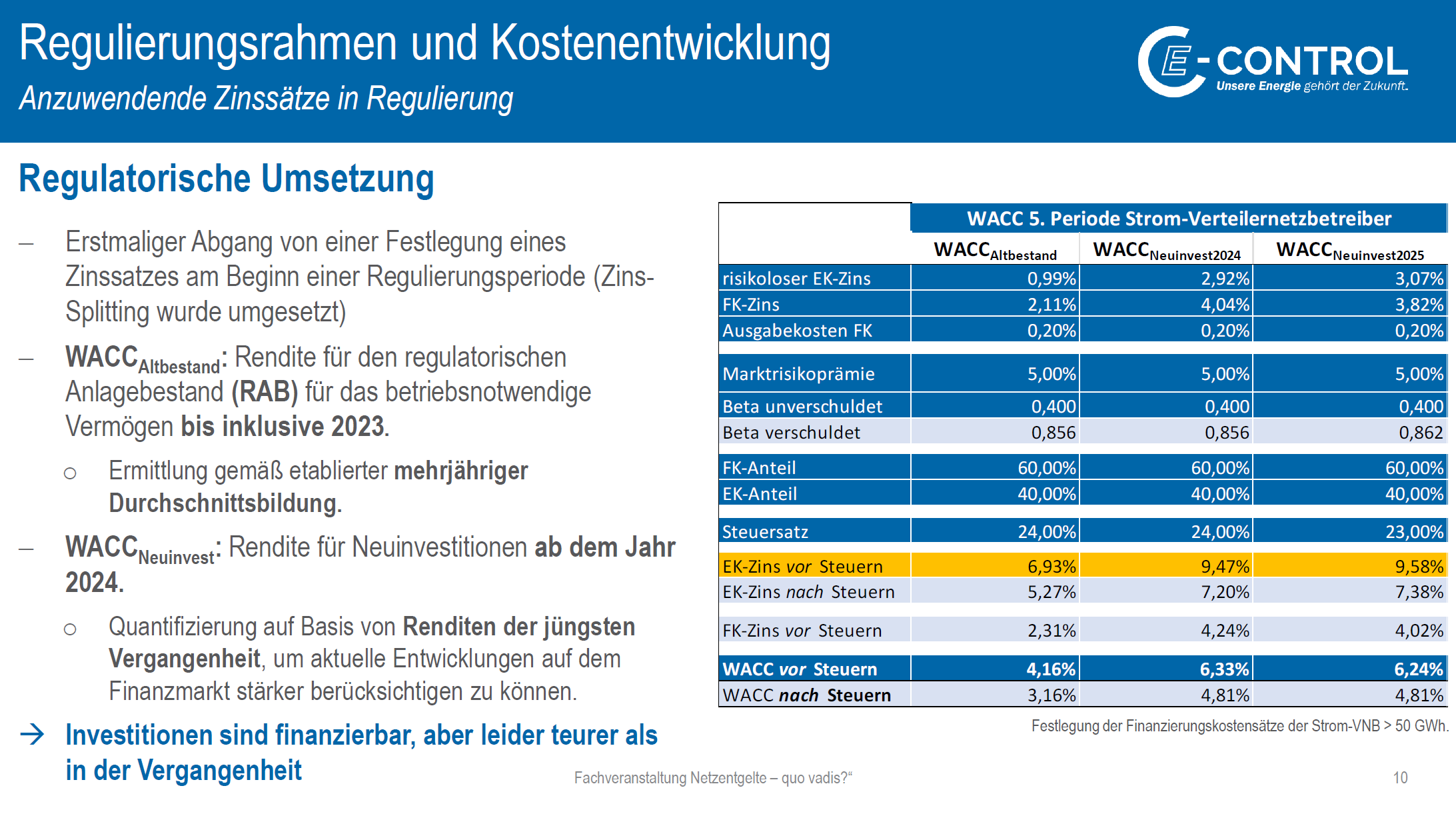 Da gibt es viele Spielereien: Die Netzbetreiber haben recht "agresssive" Abschreibzeiträume, die ihnen e-Control anerkennt. In der aktuellen Regulierungsperiode der e-Control können zBsp Umspannwerke und Trafostationen auf 20 Jahre abgeschrieben werden. Aktuelle Lebensdauer wird wohl etwas länger sein. Oder die vorgeschriebene Faktorproduktivitätssteigerung (der X-Gen Faktor). Für die aktuelle fünfte Regulierungsperiode (1.1.24 - 31.12.28) hatte e-Control eine Studie der WIK Consult als Basis genommen und 1,5% jährliche Produktivitätssteigerung für Netzbetreiber "vorgeschlagen". Daraufhin hat der Lobbyingverband ÖsterreichsEnergie für die Netzbetreiber eine Gegenstudie zweier Privatsachverständiger (Gugler/Liebensteiner) vorgelegt, daß aufgrund "des herausfordernden Marktumfeldes für Netzbetreiber" der von e-Control geforderte Produktivitätszuwachs unrealistisch ist und maximal 0, eher ins Negative geht. Im Endeffekt hat e-Control dann 0,4% /Jahr angesetzt. (Bei diesen eher klein anmutenden Werten darf man den exponentiellen Effekt über 5 Jahre nicht vergessen. Bei 0,4% sind das in 5 Jahren 1,6%, bei 1,5% wären das 6,1% gewesen) |