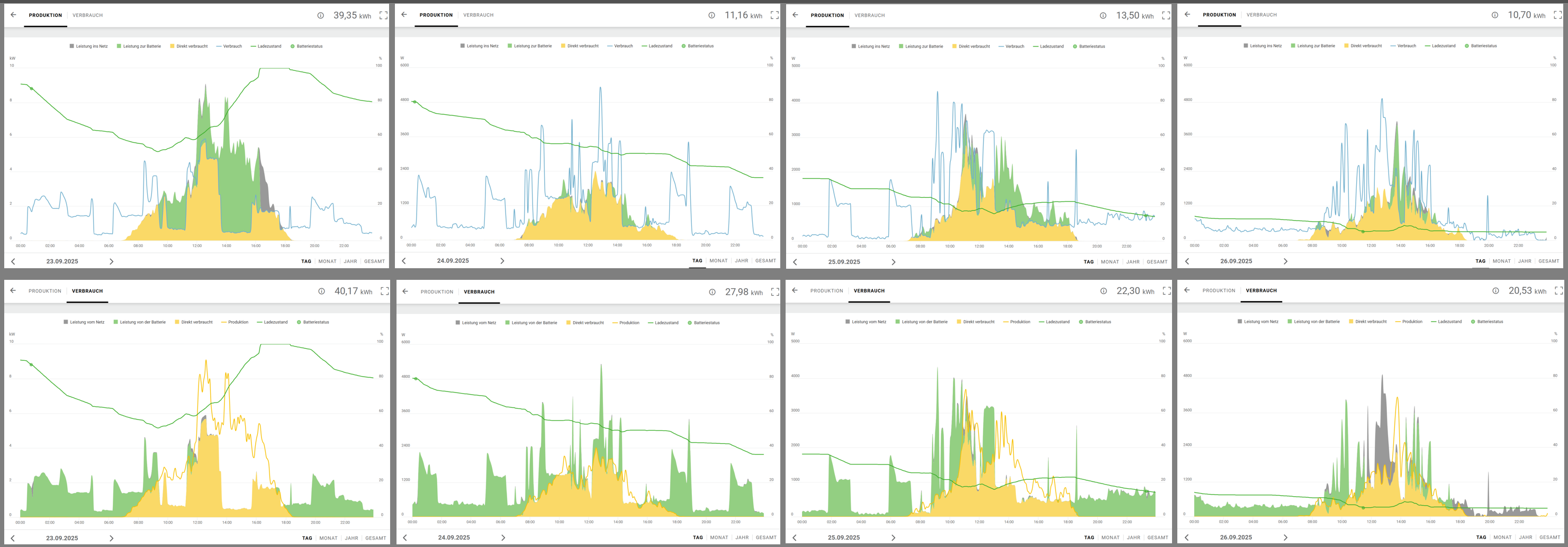 Im Sommer kann es natürlich den Überschuss in die BEG abgeben, aber wenn das Wetter schlechter wird, steigt der Eigenverbrauch (bevor der Überschuss für die BEG ins Netz gestellt wird):