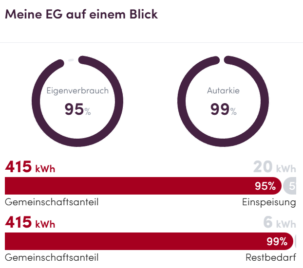 (Es ist relativ leicht, einen der beiden Werte Eigenverbrauch und Autarkie in einer EG recht hoch zu bekommen, aber deutlich schwerer beide gleichzeitig. Daher die Freude .....)