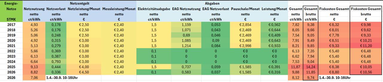 Interessant, dass in der Steiermark auch für Einspeisung Messentgelt verrechnet wird (gibt es noch andere Netzbetreiber die das machen?), es aber kaum jemanden aufregen dürfte...im Gegensatz zu 0,05 ct/kWh für die Einspeisung.
