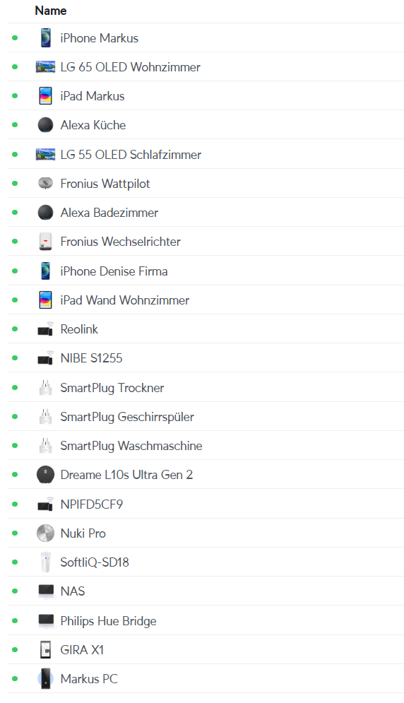 Bezüglich APs siehe Antwort oben... Beide APs AC Pro und 7 Pro scheinen 140m² abzudecken also ich würd sagen Reichweite "gleich". Die 7 Pro sind etwas größer haben dafür aber bessere Antennen verbaut. Also würd ich doch vorschlagen investier bissl mehr Geld (+50€ pro AP) und hol den 7 Pro, würd ich vermutlich in 2025 auch so machen. Ich hab mir den AC Pro 2021 geholt, da gabs die 7er noch nicht und die 6er waren noch sau teuer. Dein Setup wird ähnlich wie bei mir sein nehm ich an: Modem/Router vom Internetanbieter der DHCP macht (bei mir Fritz.Box) und dann reicht dir der CloudKey+ als Controller und Videorekorder und der PoE Switch. 24 Ports ist aus meiner Sicht auch overkill. Ich nutze gerade mal 11 Ports von meinen 16 und hab insgesamt aber >50 aktive Netzwerk Clients über den Tag laufen: Von PCs, Notebooks, TVs, Alexas, iPhones, iPads, Smart Steckdosen, Wechselrichter, Tesla M3, Entkalkungsanlage, Nuki, Philips Hue, Kameras, Wärmepumpe, Staubsaugerroboter, Mähroboter etc. |