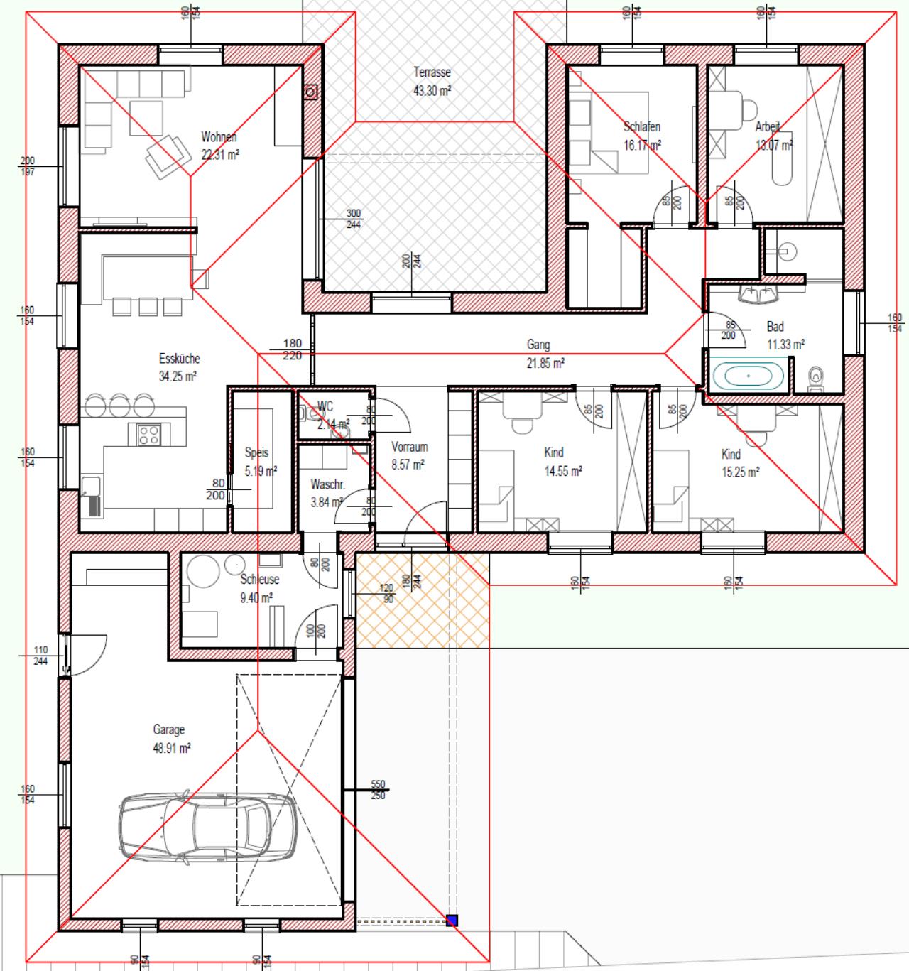 Wir planen derzeit ein 175m² Bungalow + ~50m" Garage . 50er Ziegel