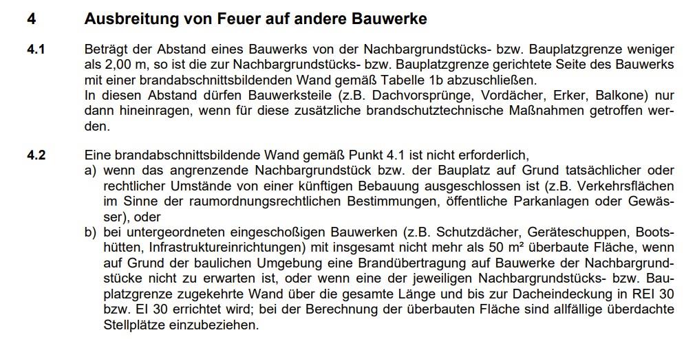 Hallo, bzgl. Baubewilligung: Ob du eine brauchst oder nicht hängt vom jeweiligen Bundesland ab, da in der jeweiligen Bauordnung beschrieben ist, wann du eine brauchst. bzgl. Brandschutzmauer: anbei hilft dir vielleicht folgender Auschnitt aus der OIB 2, Pkt 4.1 und Pkt. 4.2 weiter. Es ist viel wichter zu wissen was auf den Nachbargrundstücken ist und ob eine Brandübertragung auf andere Bauwerke zu erwarten ist. ![]() Lg |