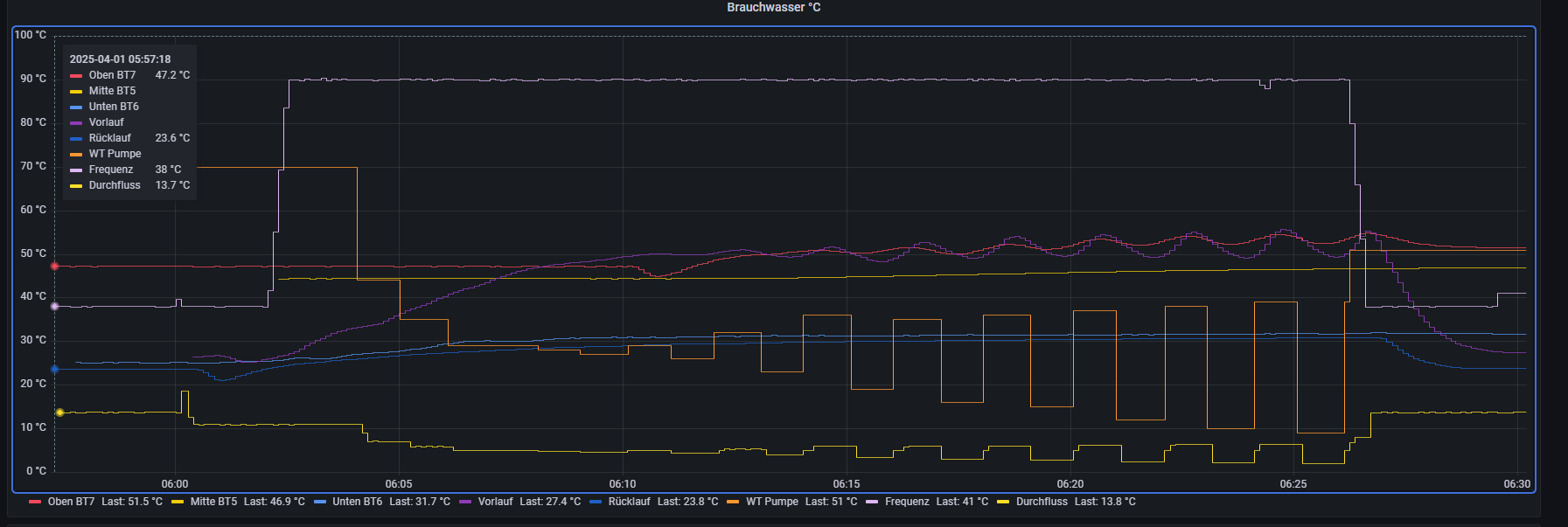 Ja das kenn ich. Ich glaube, ich muss auch wieder zurück auf ne alten Stand. Ich weiß nicht warum mein WW WW [Warmwasser] nicht in einem Zug durchfährt. Tortendiagramm ist aus und eigentlich hat die solange WW WW [Warmwasser] gemacht bis BT6 45° erreicht hat, dann sind oben irgendwas um die 52. Wichtig ist eigentlich nur, dass schnell wieder WW WW [Warmwasser] vorhanden ist, die 500L Puffer + Cosmo Friwa sind für Frau zu wenig. Mir wird schon schlecht, wenn ich daran denke, das meine kleinen Mädels auch älter werden. Da geht ne Menge dann durch. |