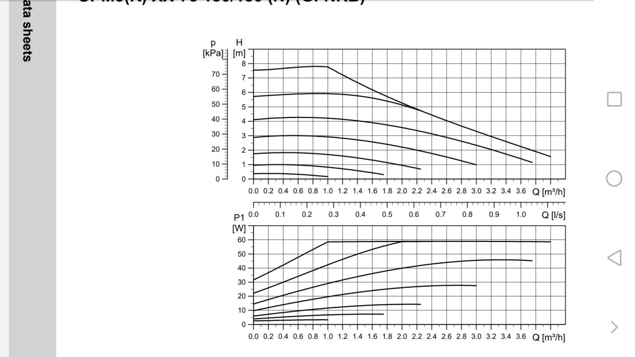 Ideal wäre eine komplette Leistungsregelung. Also Durchsatz und Verdichter auf die benötigte Leistung stellen und nach kWh statt nach GM Regeln. Dann könnte eine Adaptierung tatsächlich eine ideale Balance zwischen Verdichterstrom und Pumpenstrom finden. Dazu würde aber ein wesentlich genauerer Durchflussmesser benötigt werden da eine kleine Abweichung hier extreme Einflüsse hat. Wir nutzen ja unterm Strich nur die GM um genau das zu tun nur das es ausschließlich bei konstantem Volumenstrom funktioniert oder die Heizkurve muss ständig verstellt werden. Bin übrigens auch wieder mal auf Auto gegangen. Pumpe ist konstant auf 50% MfG Peter Edit : übrigens die Leistungskurve der Pumpe in der S |