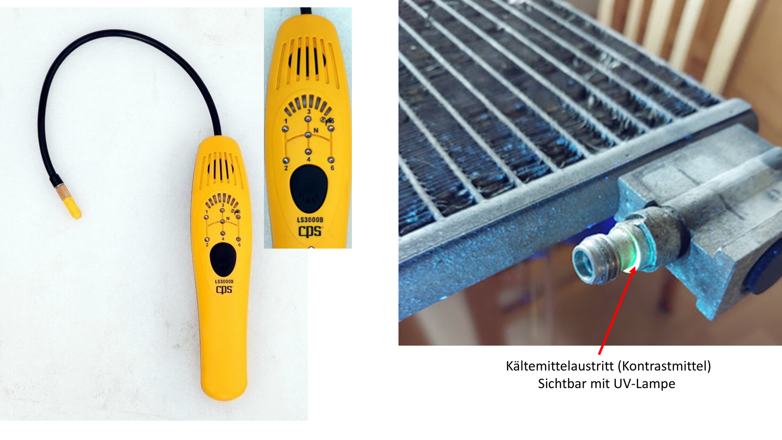 Ich tippe einmal, dass es eine Undichtigkeit im Kältemittelkreislauf ist. Könnte eine Lötstelle, bzw. eine Bördelverschraubung sein. Das Kältmittel hinterlässt keine Spuren, da es sofort verdampft. Mit dem Kältemittel tritt auch Kompressoröl mit aus, und dieses sieht man dann. Mit einem "Gasschnüffler" sollte das Leck zu finden sein. Soweit mir bekannt, ist in den Wärmepumpen kein UV-Kontrastmittel drinnen. Somit scheidet die Lecksuche mit der UV-Lampe aus. |