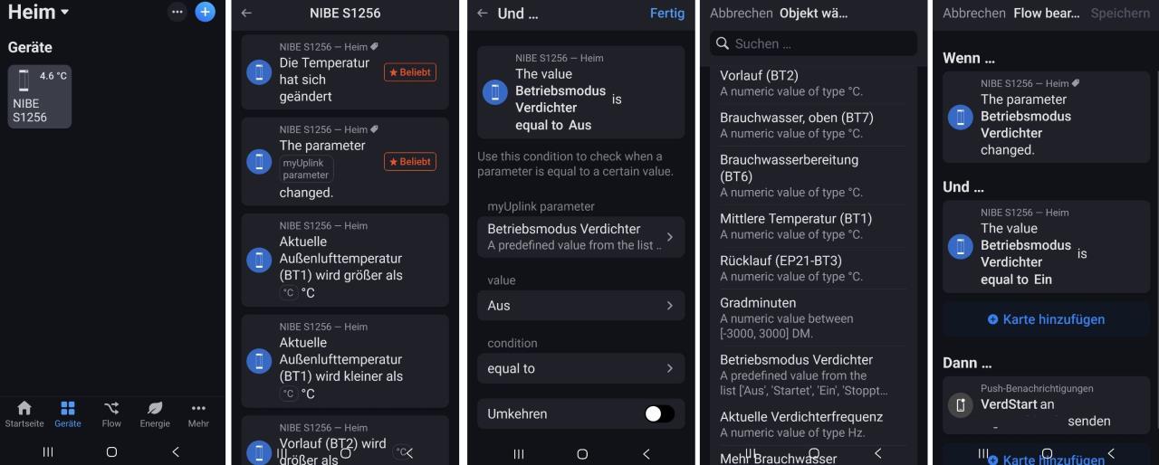 Dafür nun eine simple Pushnachricht, daß der Verdichterstatus AUS ist