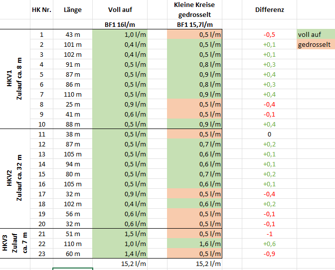 Eine durchschnittlich gut ausgelegte Anlage sieht bei alles auf und 100% 24-25 l/min. Ein sehr guter Wert wäre 26 und mehr. |
