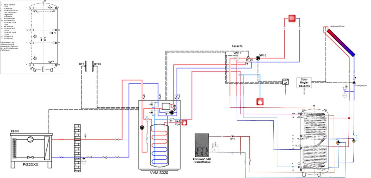 Lass das mot dem Puffer und dem gemischten Heizkreis.