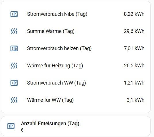 Ich habe nur Gesamtproduktion und Gesamtverbrauch in kWh. Nicht getrennt nach Heizen und BW.