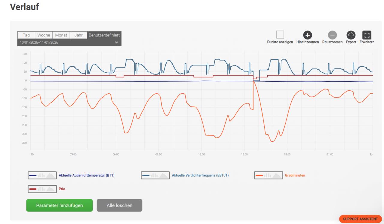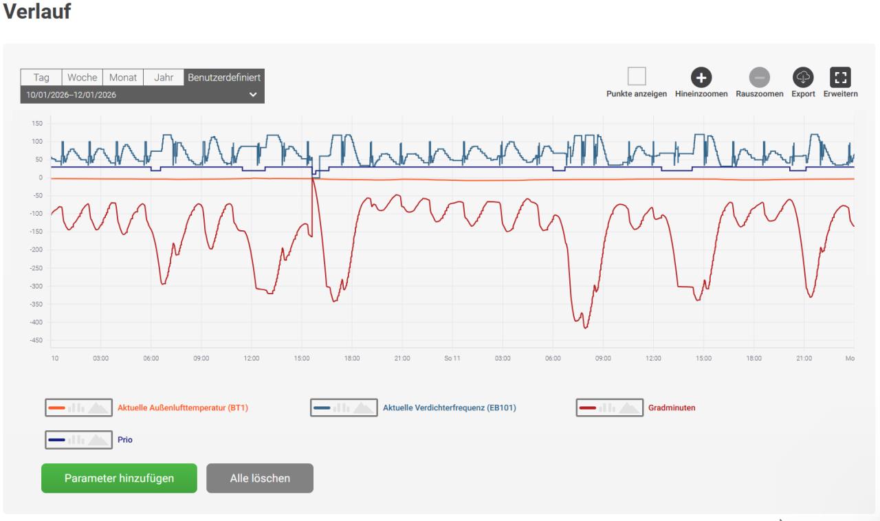 In der Hoffnung, dass sich nun die WP WP [Wärmepumpe] mäßiger verhält. Leider hat das bis jetzt nichts gebracht.