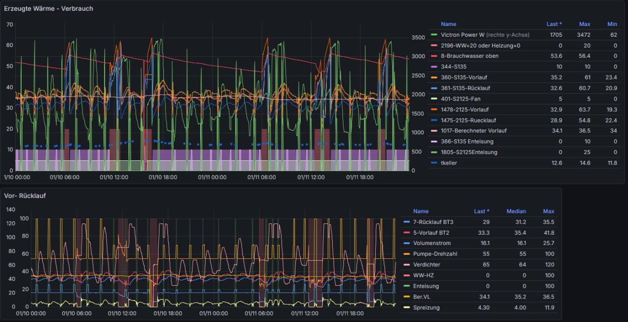 Die Grafiken, die ich im Nibe Portal erstellen kann, zeigen mir nicht annähernd das, was ich mir selbst mit Grafana zusammenstellen kann.