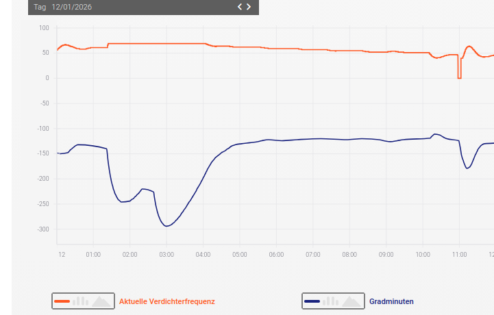 Der Zeitraum in dem die WP WP [Wärmepumpe] mit 120 Hz läuft erscheint mir bei deinen Daten erst mal nicht ganz unplausibel; die Außentemperatur wäre natürlich relevant.