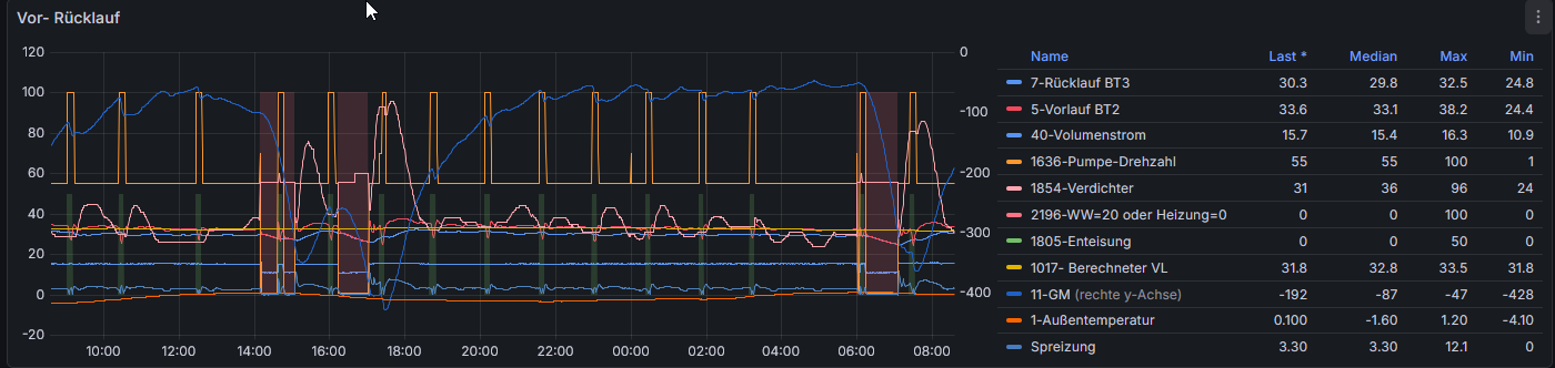 Vielen Dank noch mal für die Hilfe. Mit dem Wert bin ich jetzt bei 1000 und die WP WP [Wärmepumpe] dreht selbst bei -3 Grad auf max 100 Hz und das auch nur sehr kurz. Den SR Modus musste ich noch nicht aktivieren. Bleibt mir ja noch als weitere Option übrig. |
