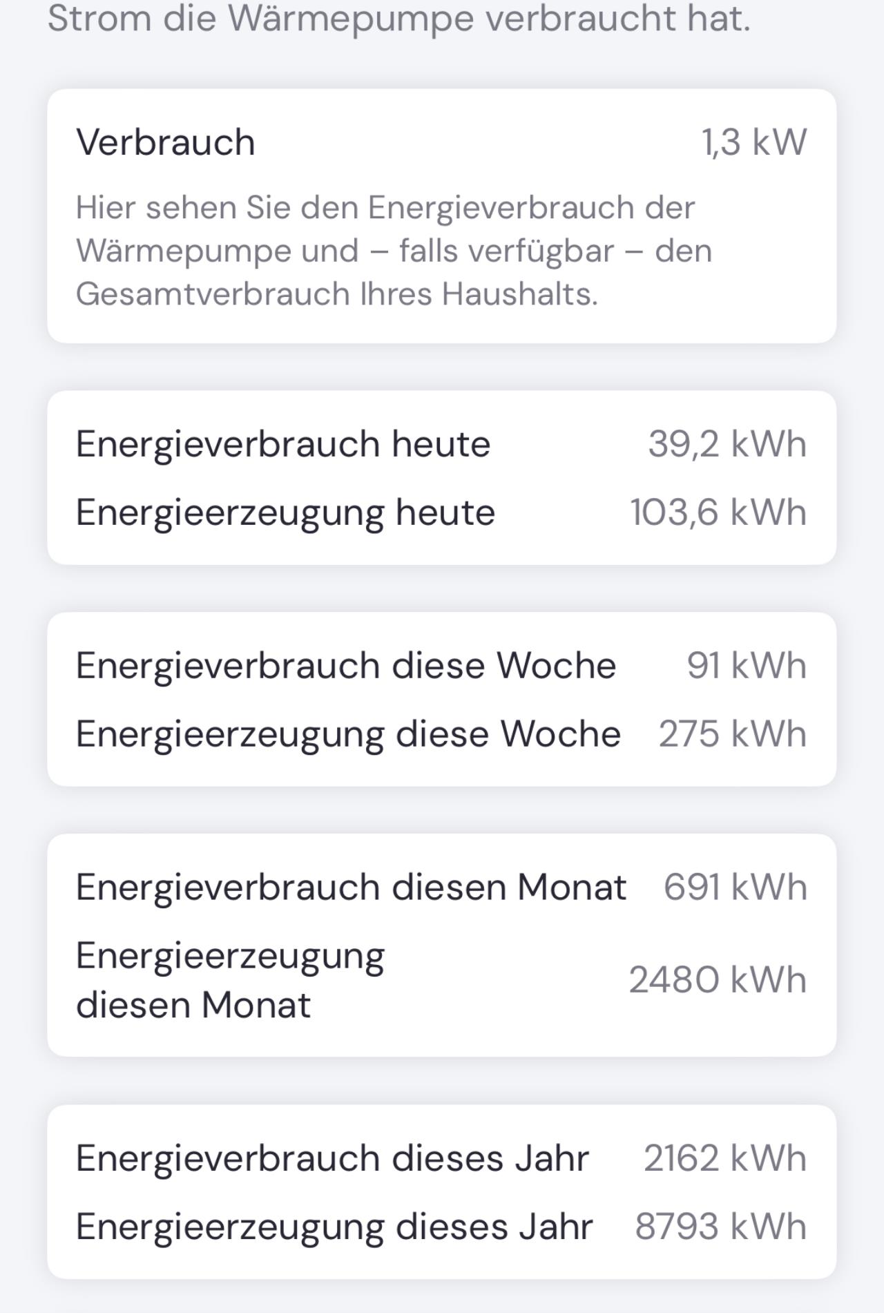 Wir heizen nur mit der Klima, und hatten auch im Dezember meist Nebel mit knapp über 0°, aber nur wenige Abtauvorgänge und auch keinen signifikant höheren Verbrauch gegenüber Dez 2024.