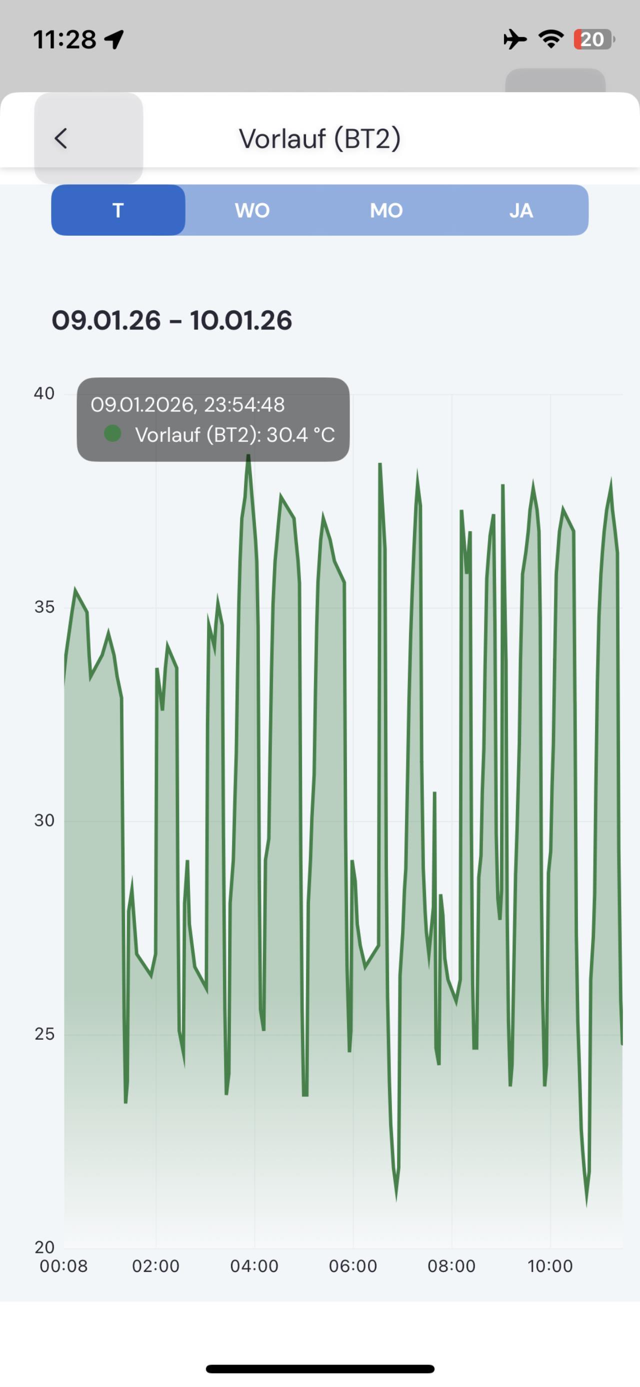 Falls jemand eine Idee hat..,seit der Umstellung auf den Volumen Strom 14 und Drehzahl gp1 auf 50 % gehen bei mir die GradMinuten auf -759 oder mehr runter die waren vorher deutlich geringer so -200 - -300 . Ist das ein Problem? Die Spreizung ist wenn gerade keine Enteisung meistens 5-6 Differenz vor Rücklauf also nicht mehr so hoch wie vorher bei 33/34° Vorlauf kwh verbrauch aktuell stündlich ca 1.5-1.8kWh kann das ggfs auch an den 15-20 täglichen Enteisungen liegen ? danke euch für Feedback 🙏🏻 |