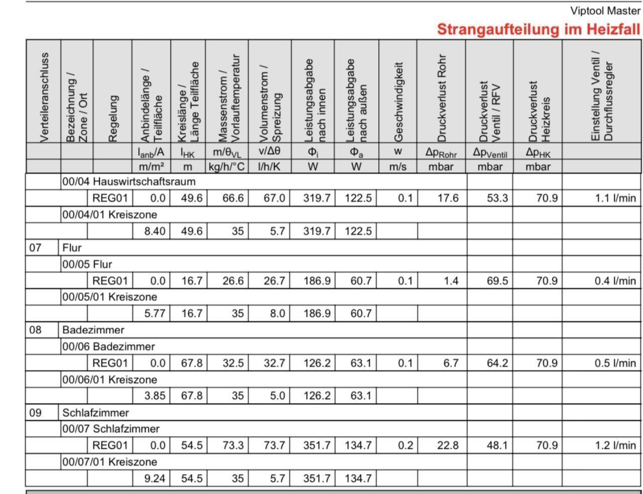 Nachtrag für alle Interessierten , wir haben uns an den GU gewendet und warten noch auf Stellungnahme hier beispielhaft die Wärme Berechnung und die verlegten Meter im EG Bad der Installateur der die Berechnung gemacht hat , hat keinerlei Erklärung warum Bad EG nur 32 m verlegt wurden in der Tabelle stehen unter 08 = 67.8m gibt es irgendein Argument was da auf uns zu kommen kann warum hier so wenig verlegt wurde? Ausgerechnet war hier eine 35° Vorlauftemp bei NAT (-9°) und im Bad sollte es dann 24° warm sein oben im Hauptbad ist die Differenz ähnlich groß. Danke für Feedback! |