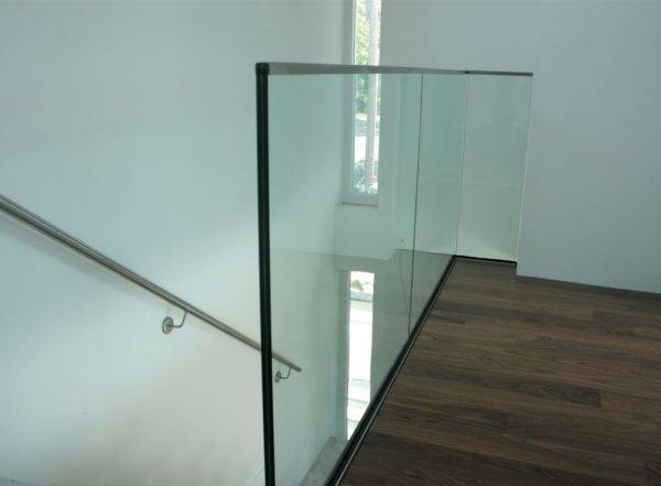 Sodala. Hab jetz die perfekte Lösung mit Hilfe eines Glasers für uns gefunden. Doch kein Bodenprofil sondern seitliche Klemmpunkte. Der unterste Bereich vom Glas wird bis 1cm über FB Kante weiss lackiert/beschichtet oder was auch immer. Ohne Handlauf und die lange Scheibe durchgehend....