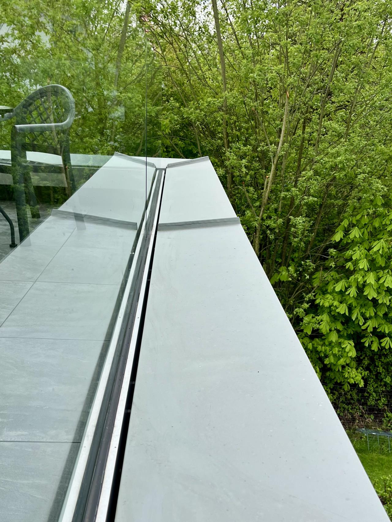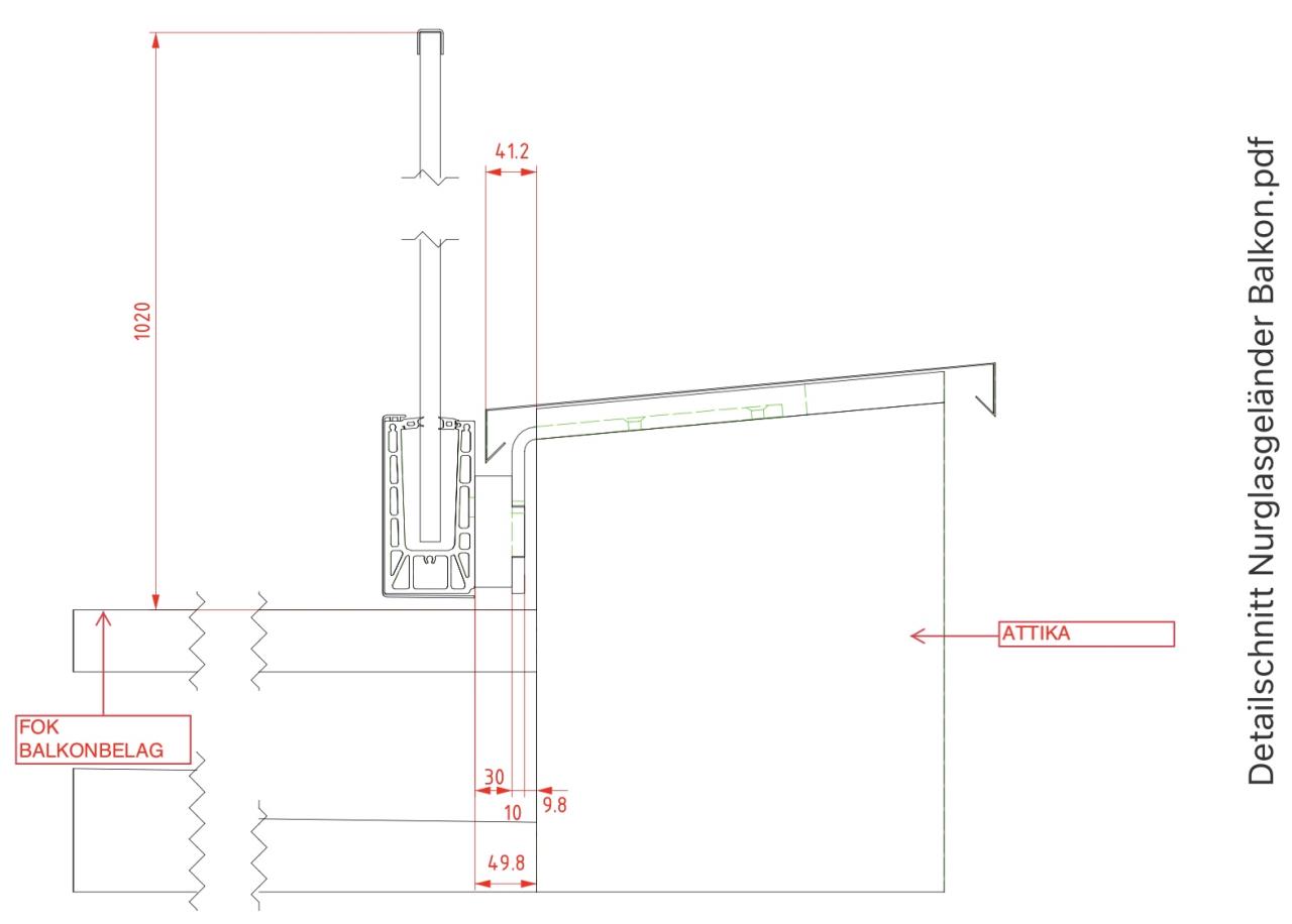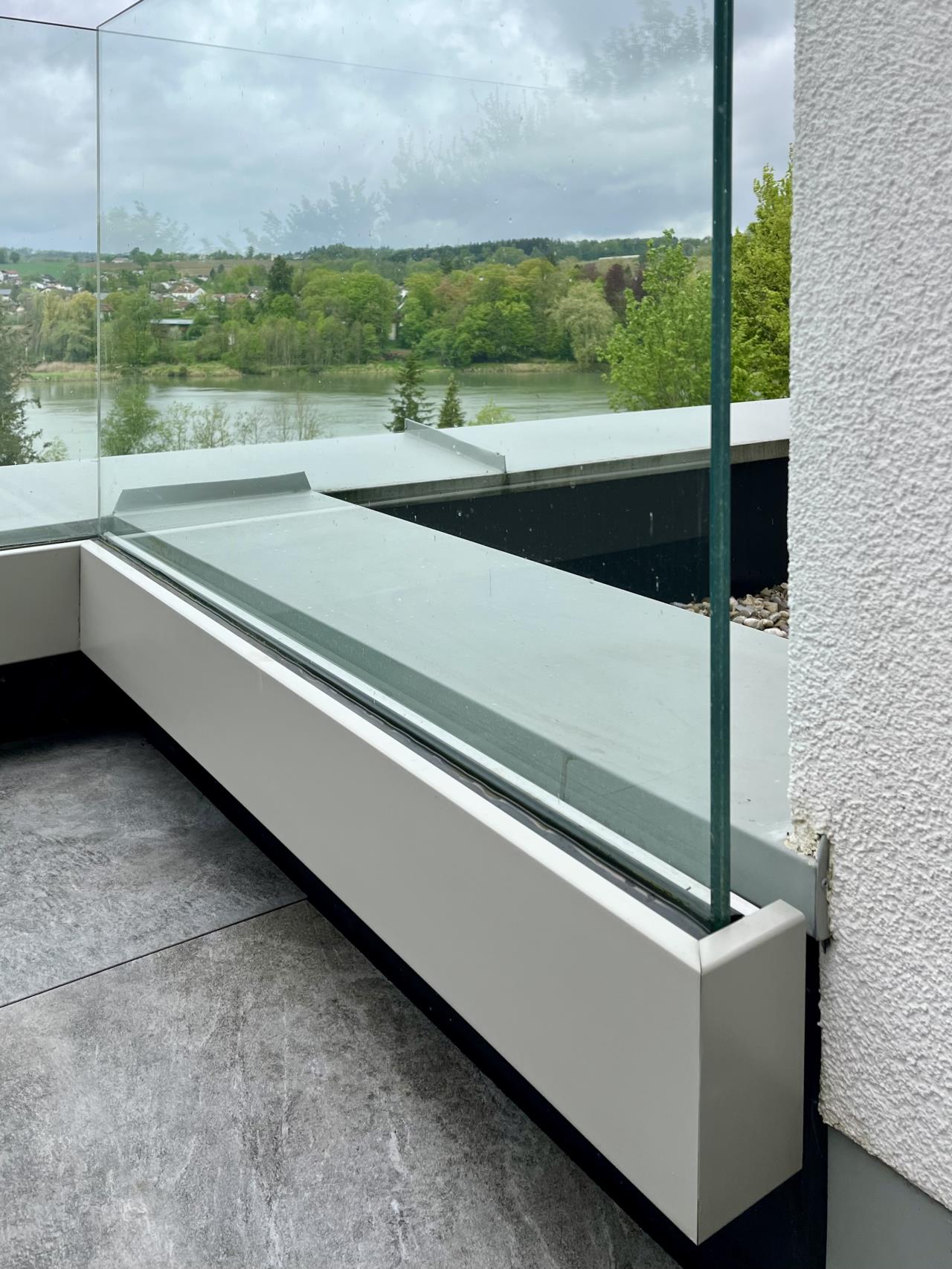 Wir haben Nurglasgeländer an (niedriger) Attika und sind sehr zufrieden mit der Ausführung. Die Halterungen für die Profile wurden von oben im Mauerwerk der Attika verankert. Die Verblechung wurde darüber angebracht, so dass die Konstruktion unsichtbar ist. Regenwasser tropft einfach nach unten ab und kann nicht ins Mauerwerk eindringen.