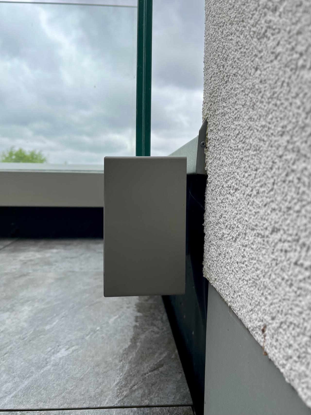 Ich war leider nicht dabei als die Montage erfolgte. Würde aber davon ausgehen, dass die Profile stranggepresst sind und die Abstandhalter nachträglich montiert wurden. Die Profilhalterungen sind aus Edelstahl, ebenso die Verblechung des Profils, allerdings farblich passend zur Attikaverblechung pulverbeschichtet. |