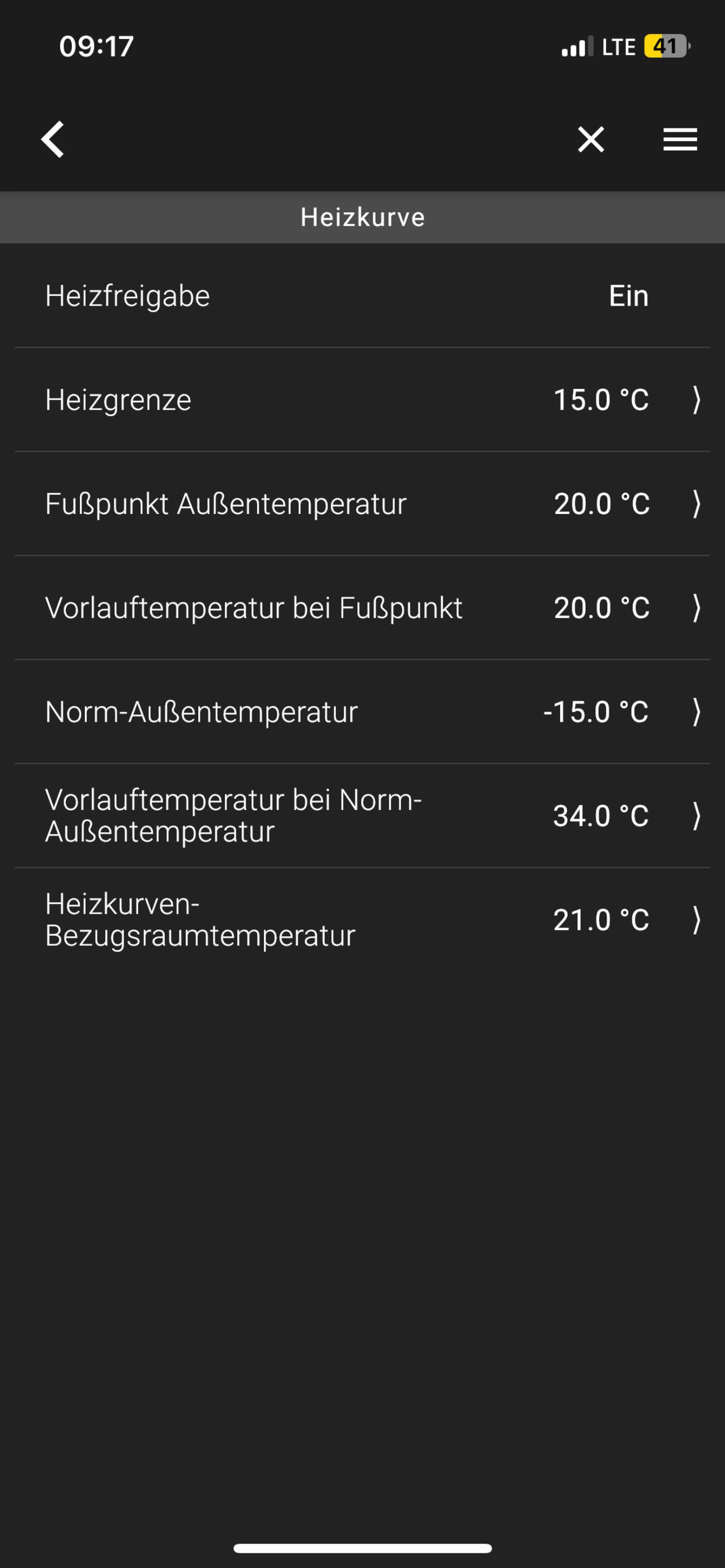 Danke für die links und die Erklärung, werde mir das in Ruhe zu Gemüte führen. Dir heizgrenze kann ich separat einstellen hier ein Foto der aktuellen heizkurveneinstellung( leider kann die wärmepumpe hier keine grafische Darstellung) |